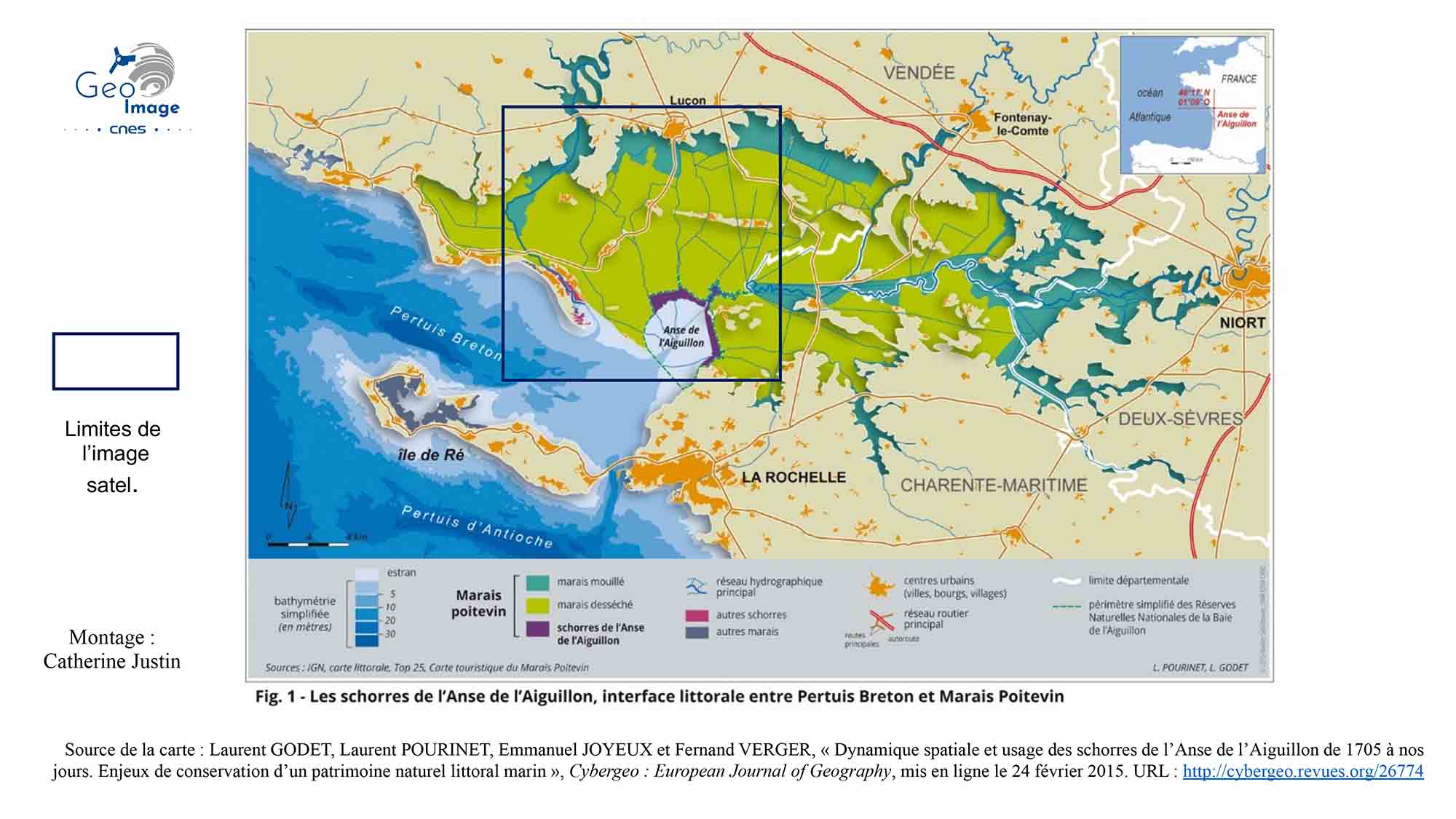 - Godet, Laurent, Pourinet, Laurent, Joyeux, Emmanuel & Verger, Fernand (2015), « Dynamique spatiale et usage des schorres de l’Anse de l’Aiguillon de 1705 à nos jours. Enjeux de conservation d’un patrimoine naturel littoral marin », Cybergeo : European Journal of Geography, mis en ligne le 24 février 2015