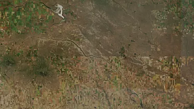Cette image de la plus longue frontière terrestre séparant deux États a été prise par un satellite Sentinel-2 le 14/08/2018. Il s’agit d’une image en couleurs naturelles de résolution native à 10m.