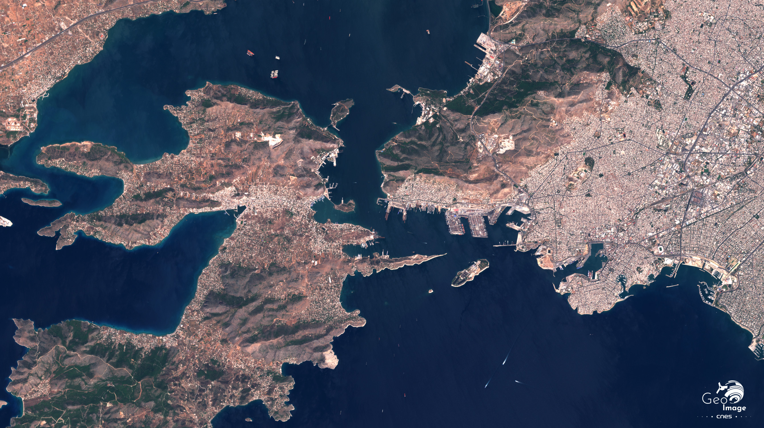 Cette image d'Athènes, capitale actuelle de la Grèce, a été prise le 29 août 2019 par le satellite Sentinel 2B. Il s’agit d’une image en couleurs naturelles de résolution native à 10m.