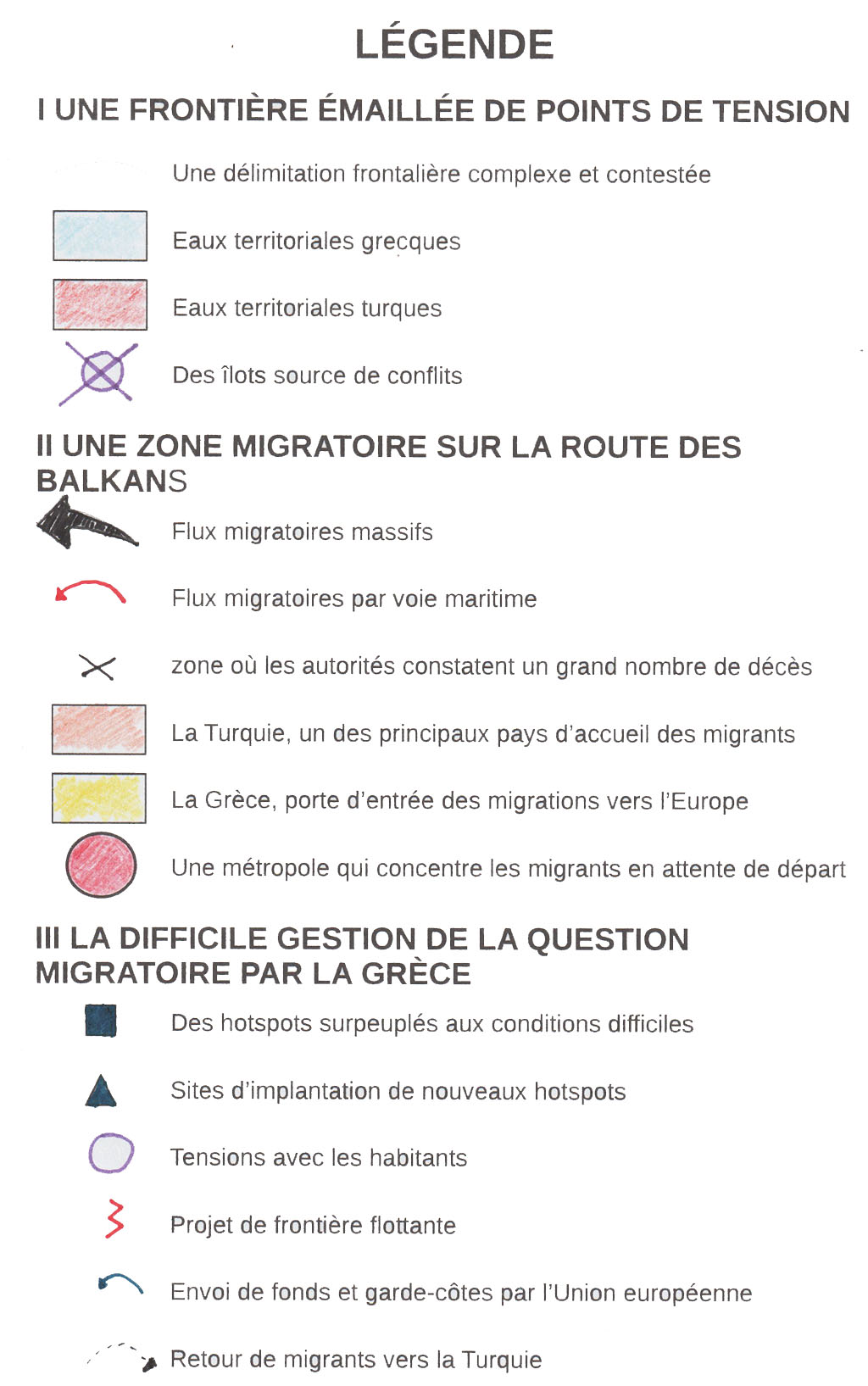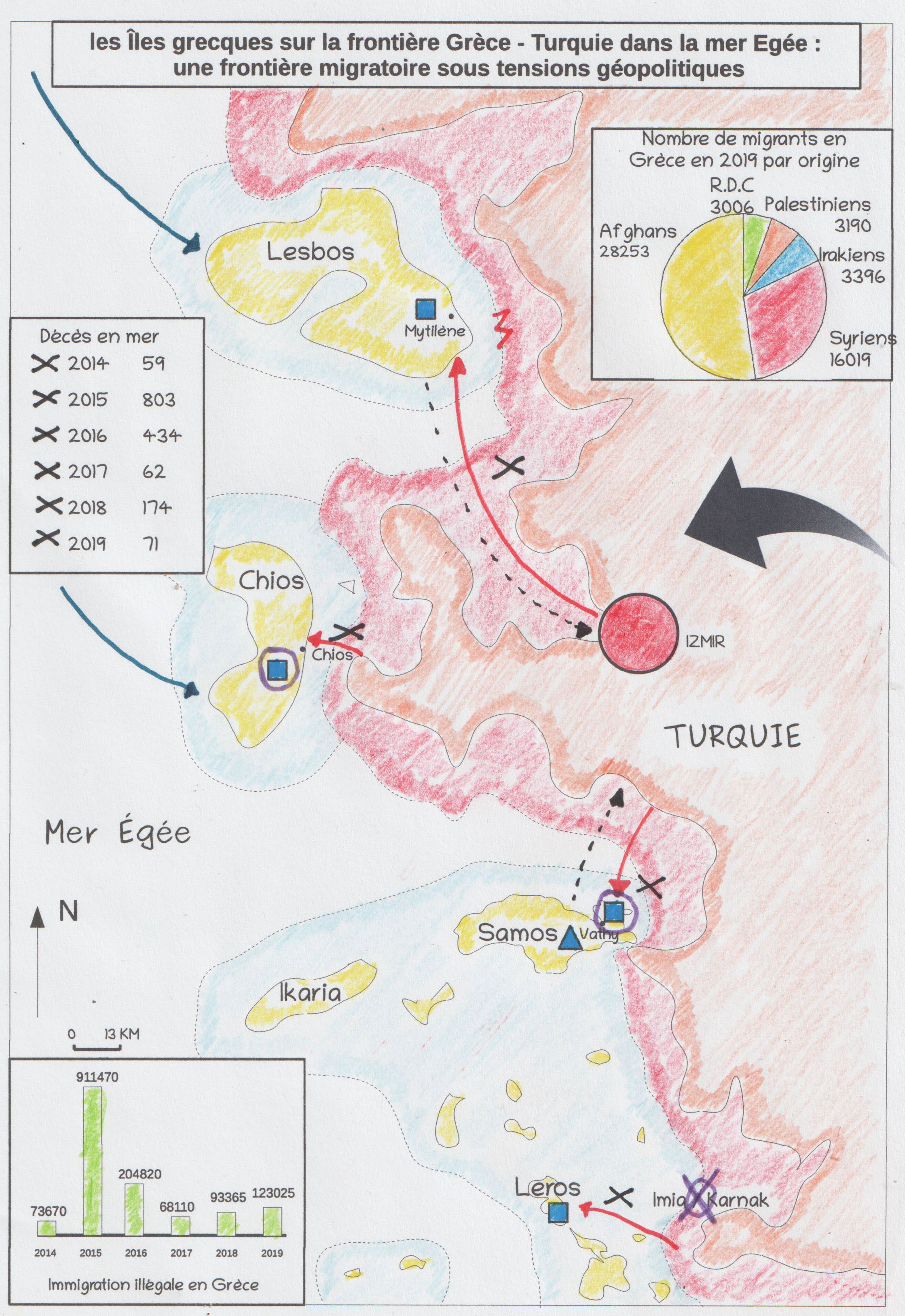 Croquis : Les îles grecques sur la frontière Grèce-Turquie dans la mer Egée : une frontière migratoire sous tensions géopolitiques.