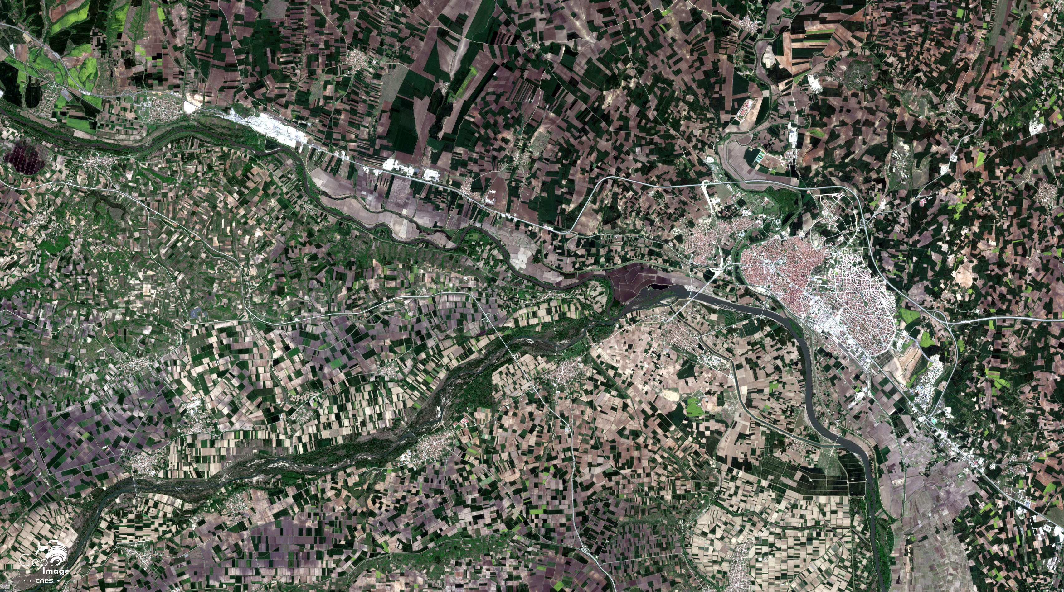 Cette image présentant la vallée de l'Evros, à la frontière de la Grèce et de la Turquie, a été prise par le satellite Sentinel 2B le 25 avril 2020. Il s’agit d’une image en couleurs naturelles de résolution native à 10m.