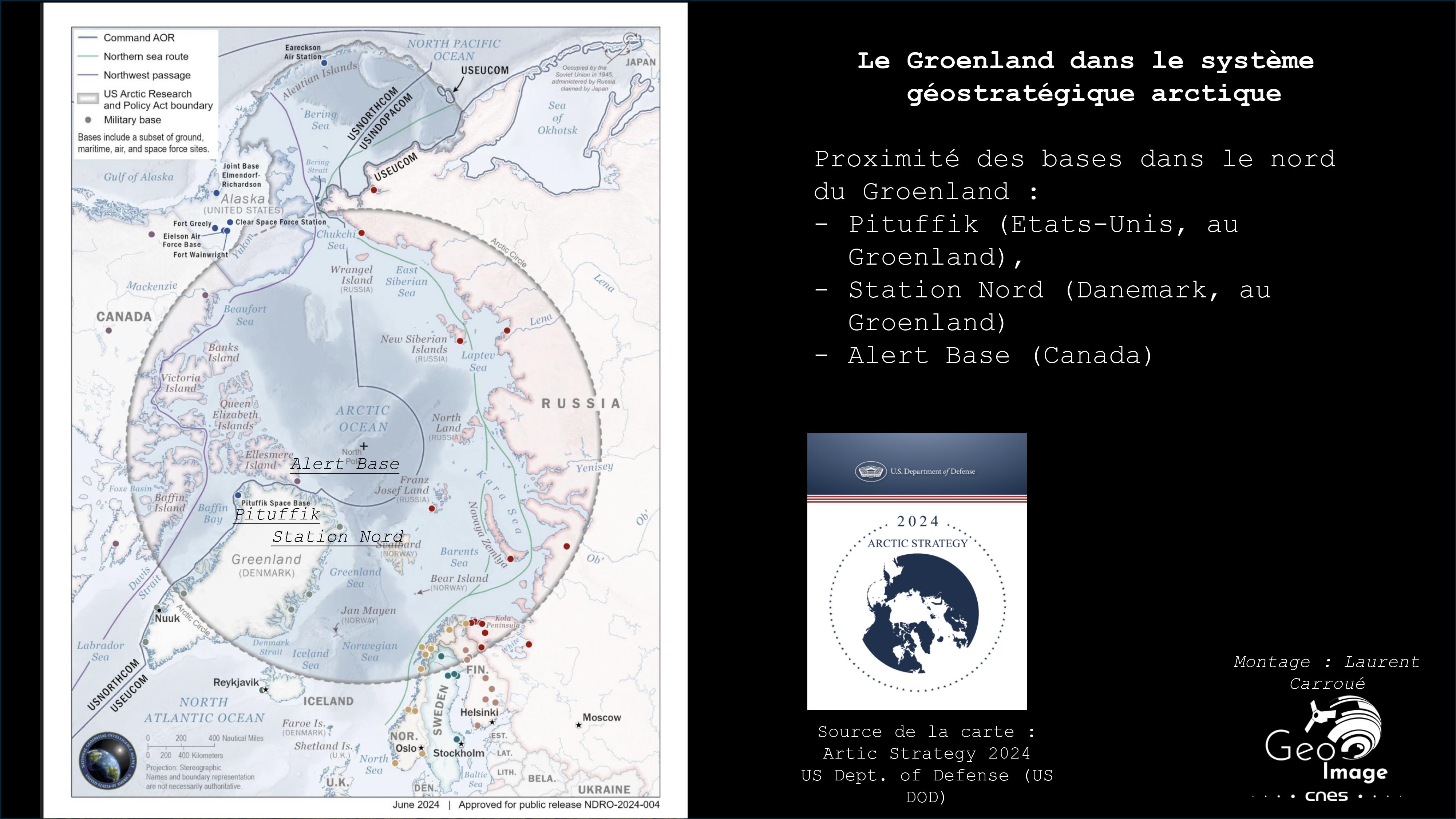 Pour bien analyser l’importance et les dynamiques de ce tout petit territoire, il convient, comme très souvent en géopolitique et géostratégie, de changer d’échelle géographique en s’intéressant à l’Amérique du Nord et à l’océan Glacial Arctique.