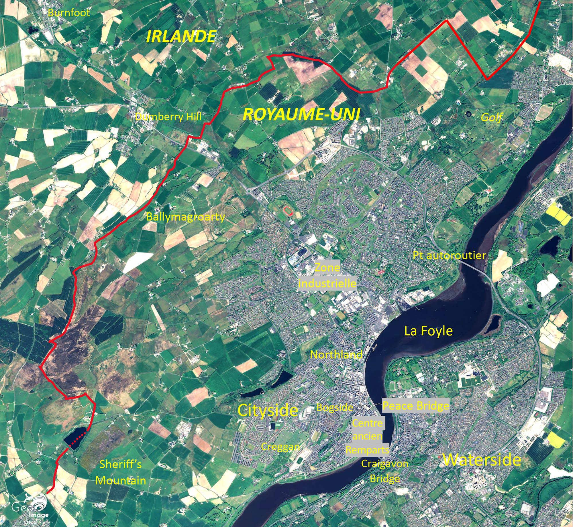 Londonderry : une ville et sa région coupées et organisées par la frontière République d’Irlande – Irlande du Nord en mutations