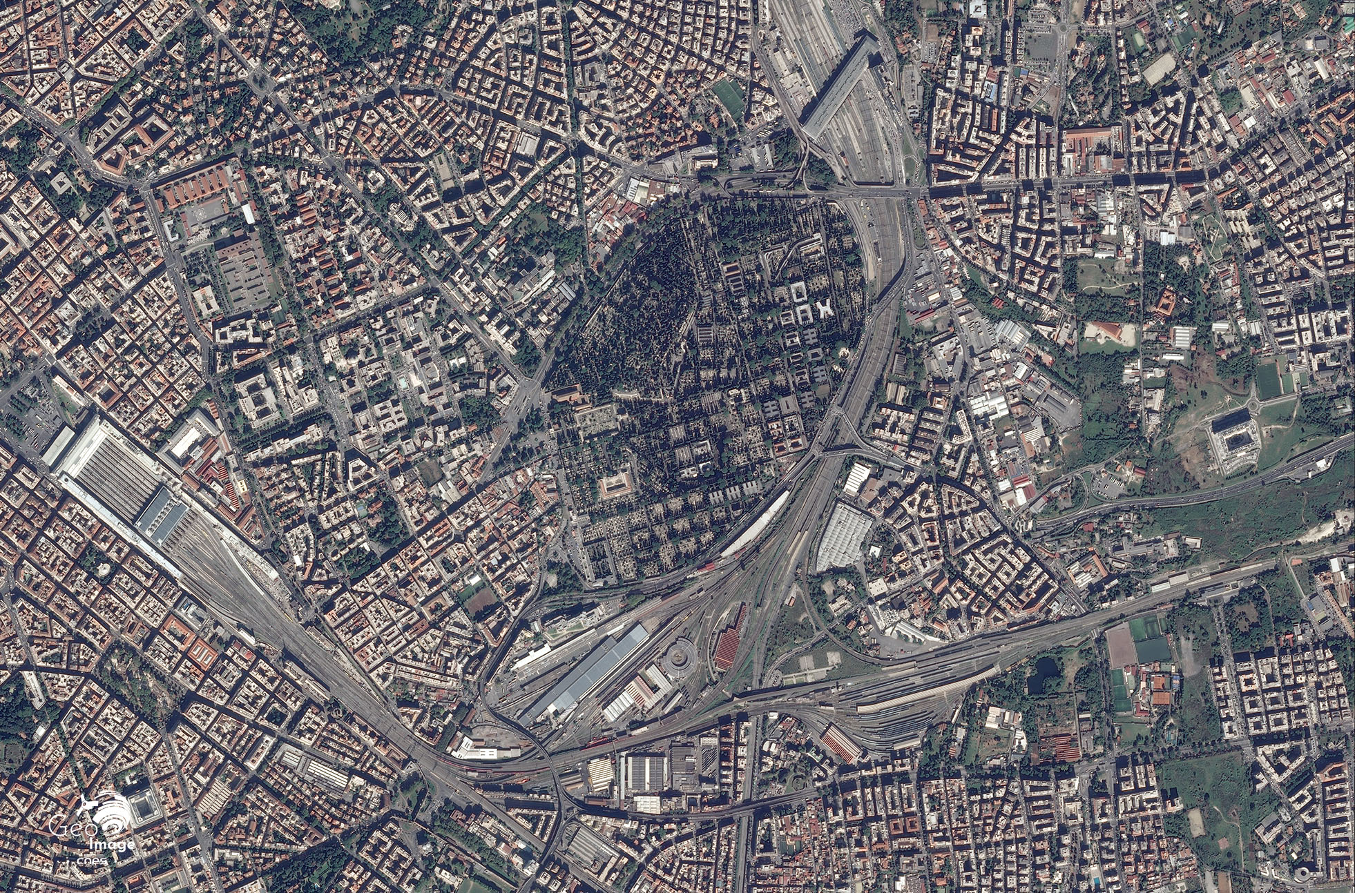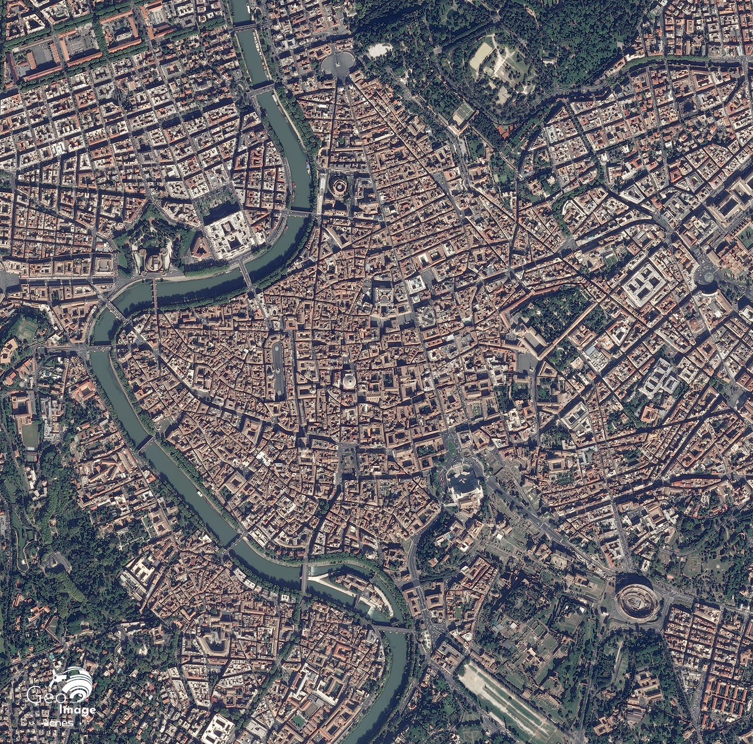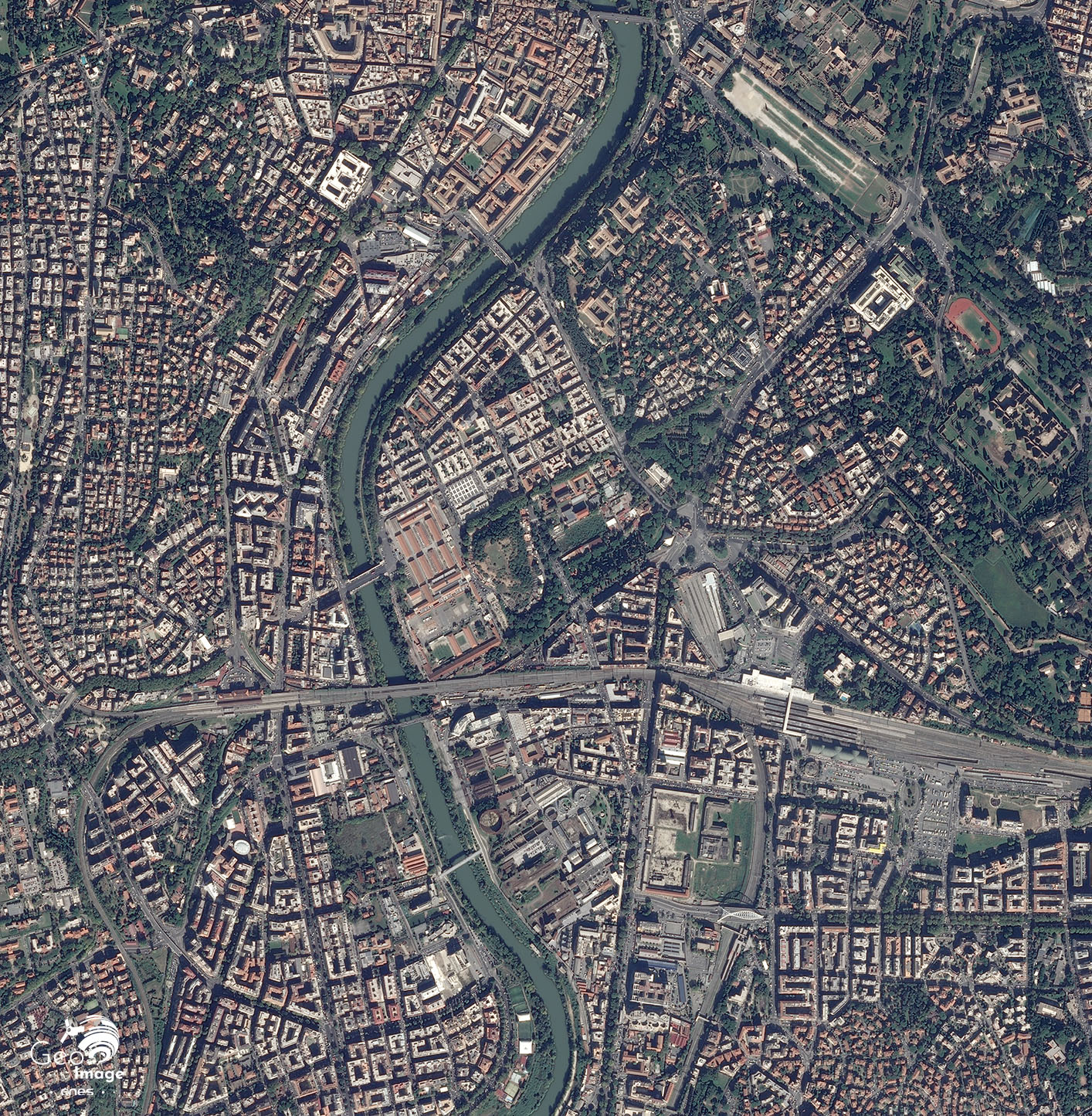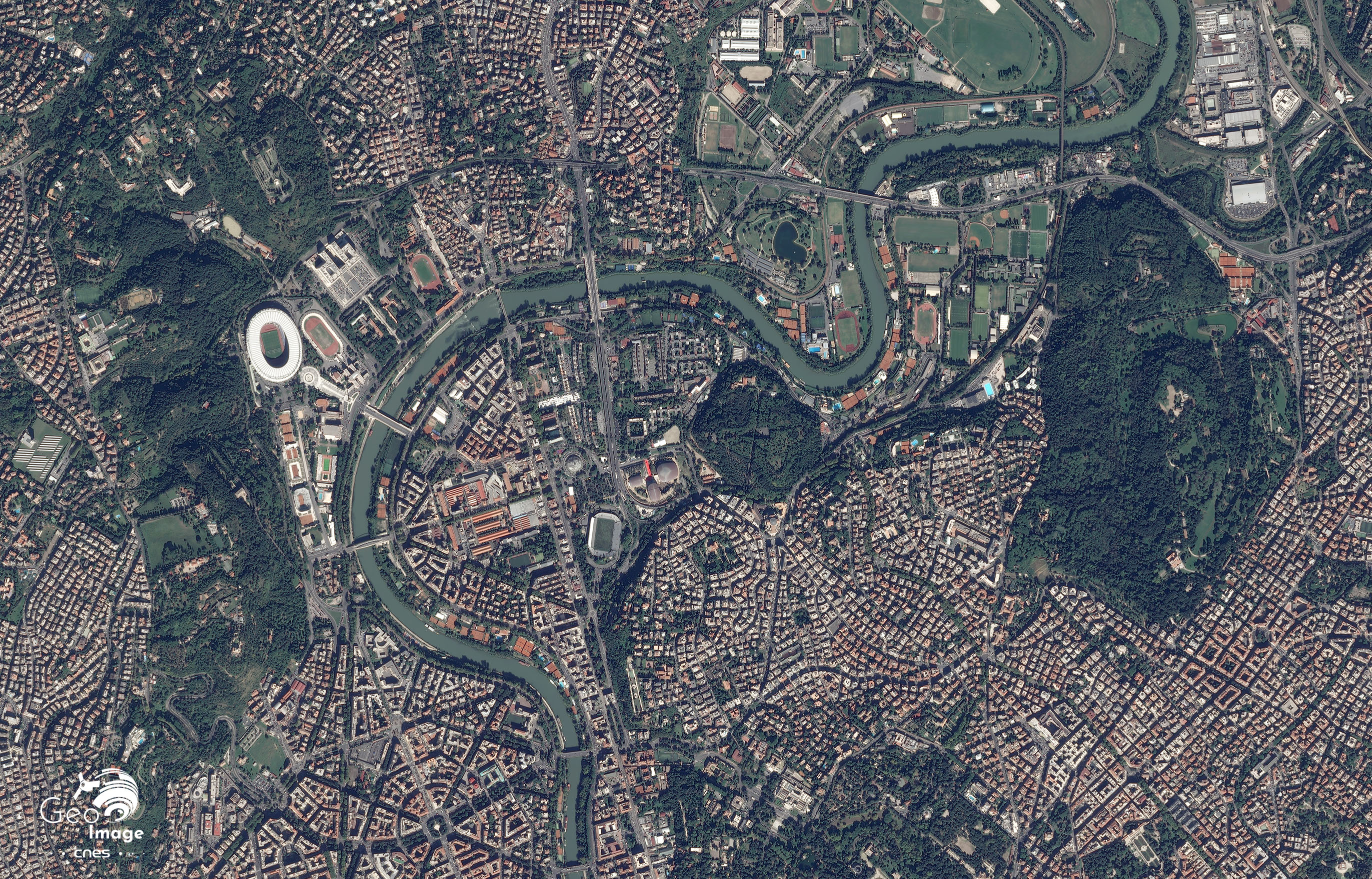 Cette image de Rome, capitale de l'Italie, a été prise par un satellite Pléiades le 18 octobre 2019. Il s’agit d’une image en couleur naturelle, de résolution native à 0,70m, ré-échantillonnée à 0,5m.