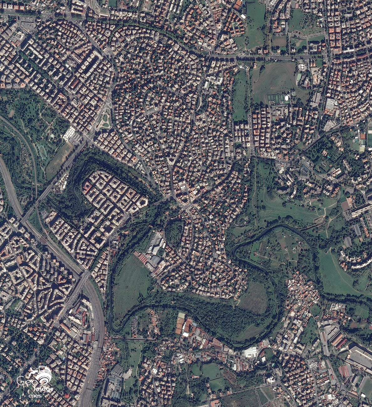 L’image satellite témoigne de quelques velléités de contrôle de l’expansion immobilière, ainsi le plan régulateur de 1909 prévoyait six quartiers résidentiels autour de places, qui furent bien réalisés (par ex. Flaminio et Mazzini au Nord)… Mais les espaces verts qui devaient les séparer n’ont pas résisté à la pression spéculative.