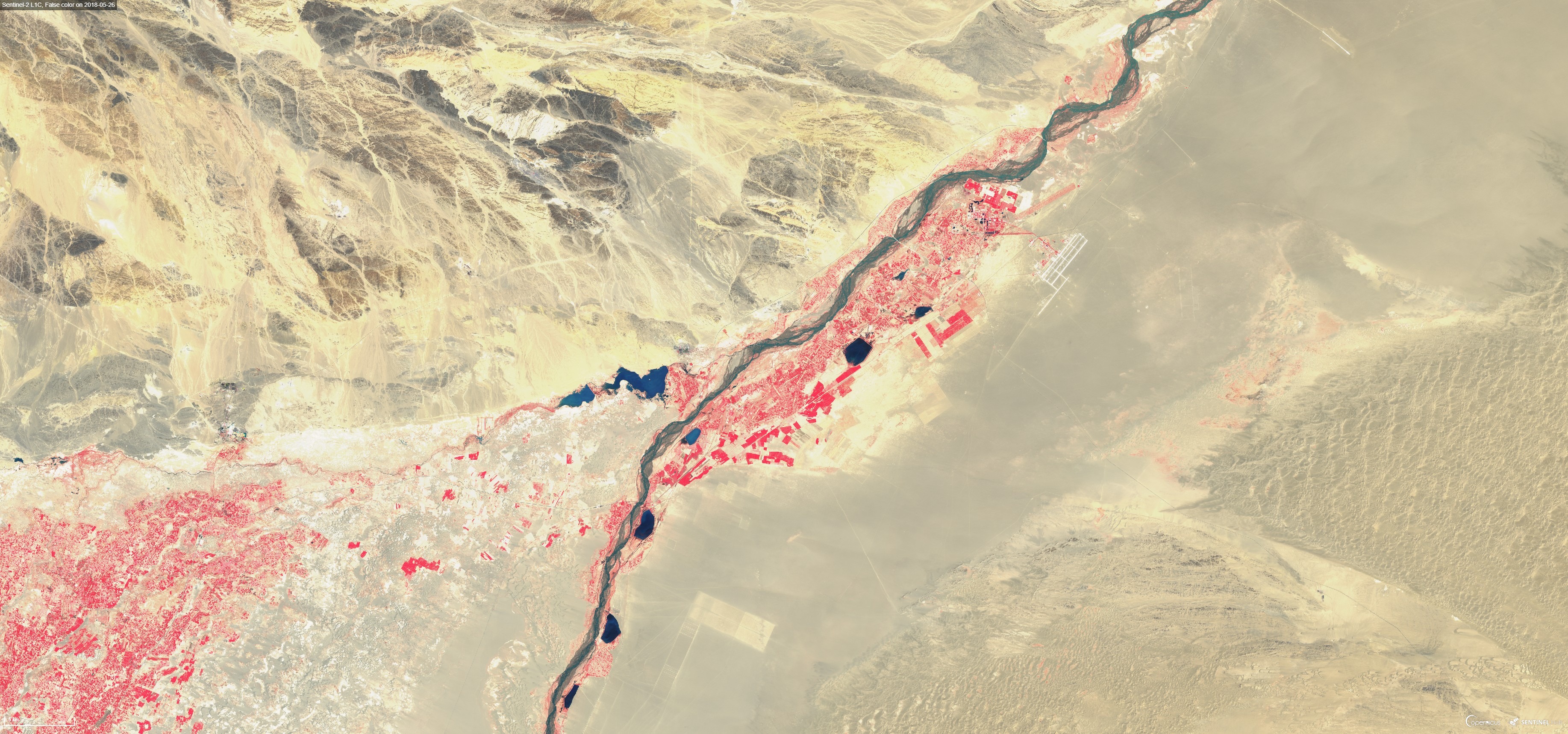 Le satellite Sentinel-2 réalise une image (résolution 10m) de la région du Gansu dans le désert de Gobi.