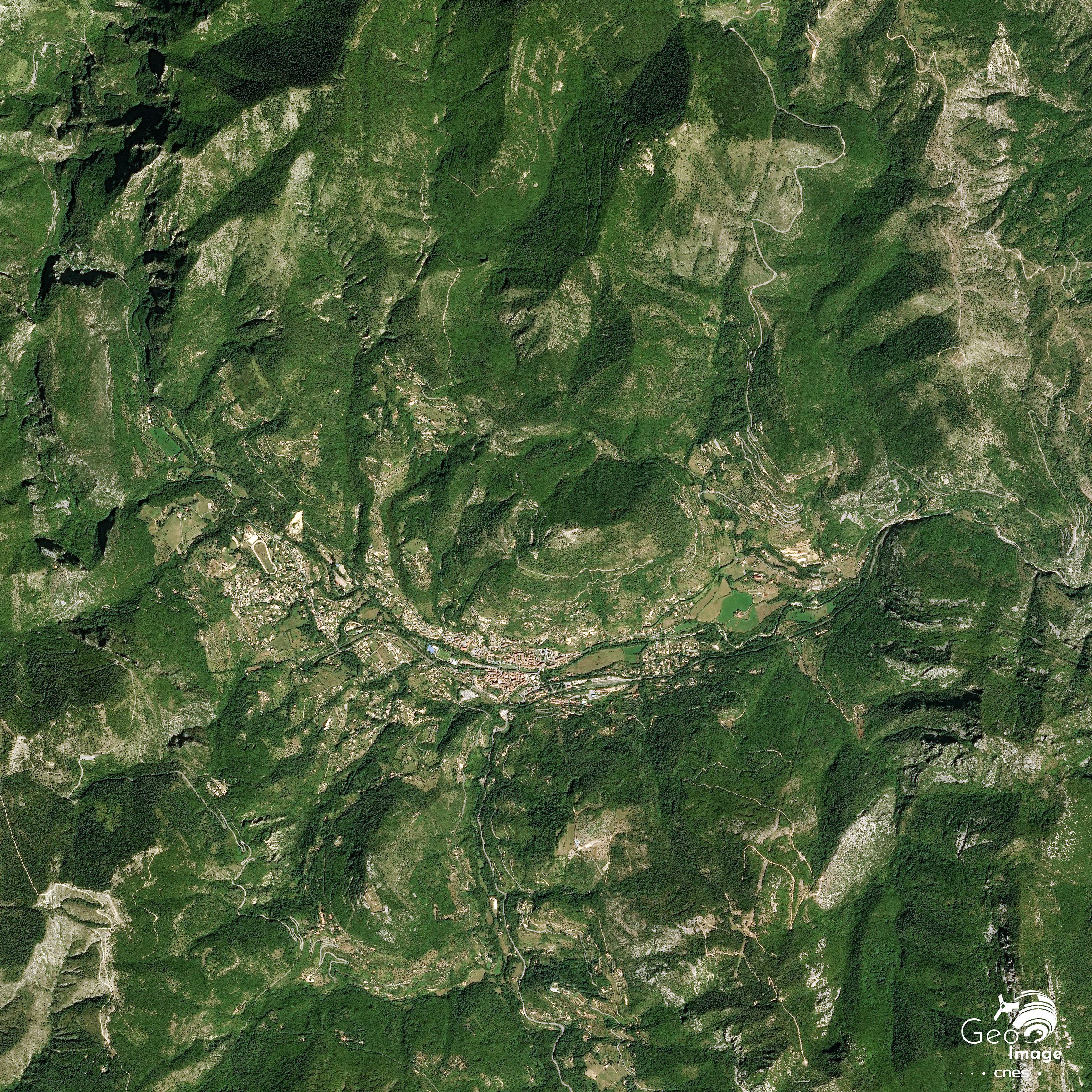 L' image ci-contre a été prise par un satellite SPOT 6 en 2018. Il s’agit d’une image en couleurs naturelles de résolution native à 10m.