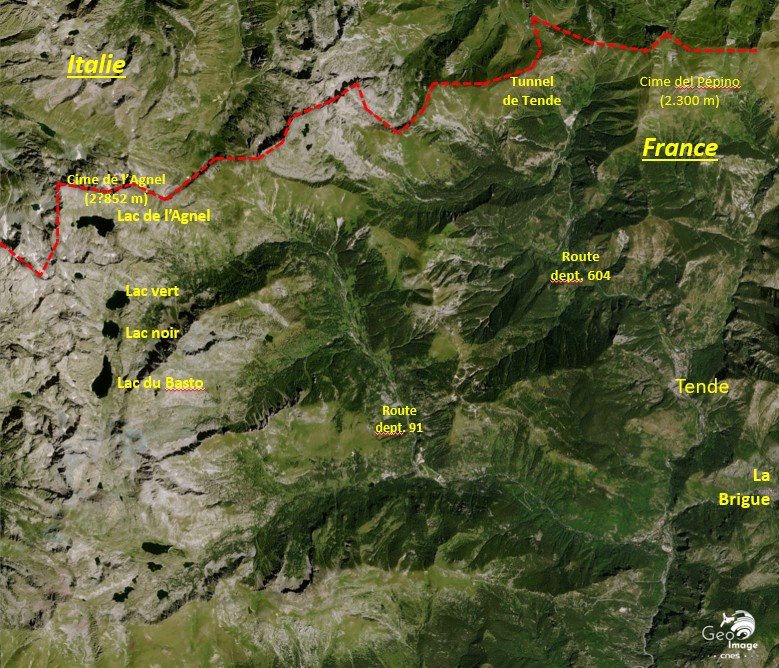 Cette situation explique qu’après le Seconde Guerre mondiale, la France va obtenir certaines rectifications à son avantage du tracé frontalier sur la chaîne des Alpes (cf. Col du Mont Cenis). Sur l’image, le Traité de Paris de septembre 1947 se traduit par l’annexion des communes de Tende (177, 4 km2) et de La Brigue (91,77 km2) par la France. Dans le haut du bassin hydrographique, cette décision met fin à l’anomalie née en 1860 : le tracé frontalier passe dorénavant exactement sur la plus haute crête topographique séparant les deux Etats, l’Italie perdant ainsi sont avantage tactique ou stratégique sur la France.