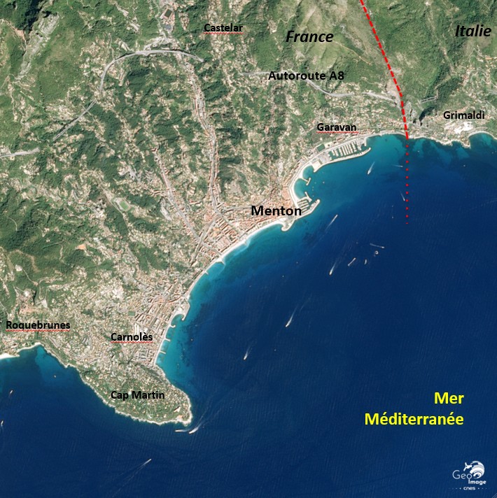 Toute l’organisation spatiale et l’histoire de la ville s’articulent donc autour de la question de la frontière qui, aujourd’hui, est un point central dans la compréhension de l’espace mentonnais. Cette thématique doit s’entendre d’abord selon une logique Ouest-Est, Menton se situant entre Monaco et l’Italie, mais aussi Nord-Sud puisque Menton a un accès vers le Moyen puis le Haut-Pays. Les contours fixés pour délimiter la Communauté d’Agglomération de la Riviera Française résultent d’ailleurs bien de ces deux logiques.