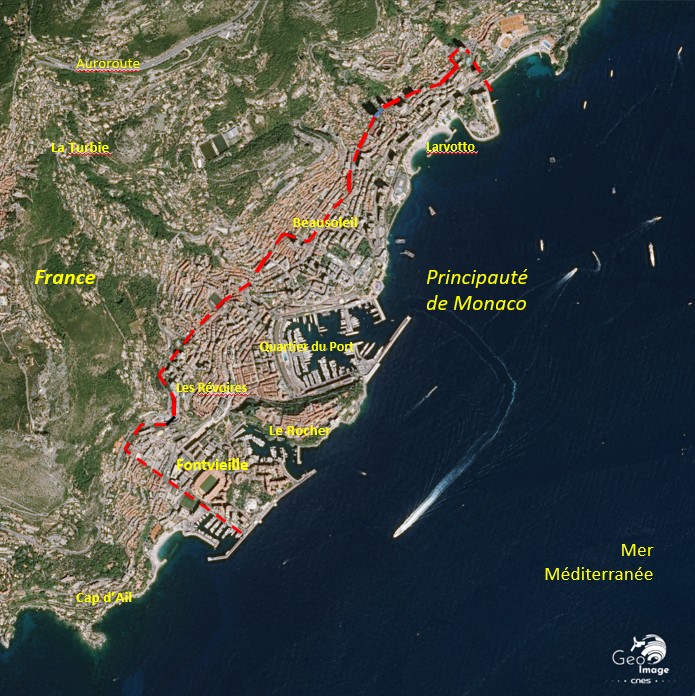 Appelée « Monte-Carlo supérieur » jusqu’au début du XXème siècle, Beausoleil est une « banlieue » de la Principauté, pour ne former qu’une seule agglomération. Dans cet espace densément peuplé et construit, certains bâtiments chevauchent la frontière entre Monaco et Beausoleil. Parfois, les avenues sont sur la frontière, à l’instar du Boulevard de France (côté Monaco) et du Boulevard du Général Leclerc (côté Beausoleil). De plus, Monaco est intégrée dans l’aire urbaine de Menton. Cet espace transfrontalier franco-monégasque est la source de nombreux flux de proximité, principalement à destination de la Principauté.