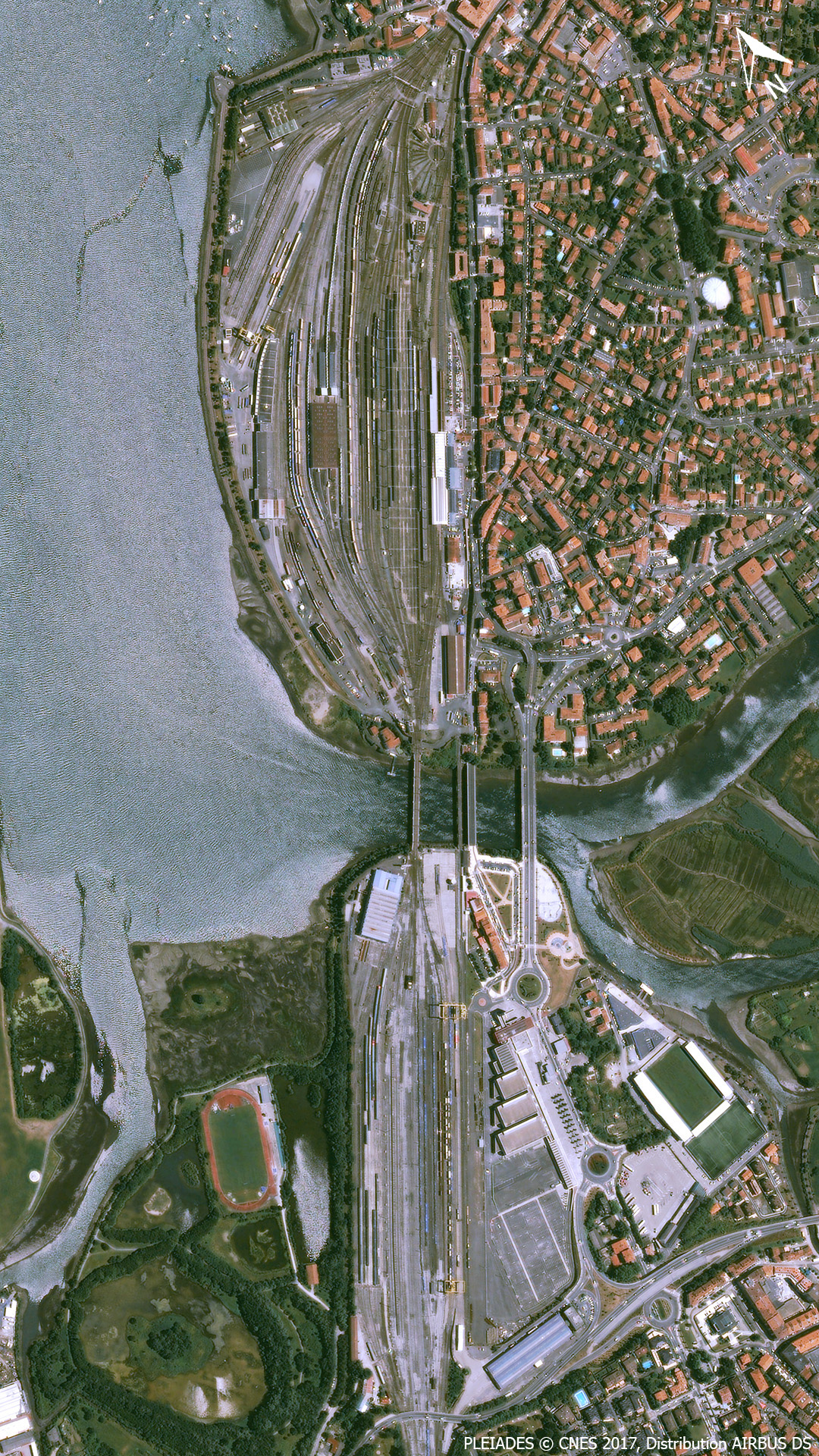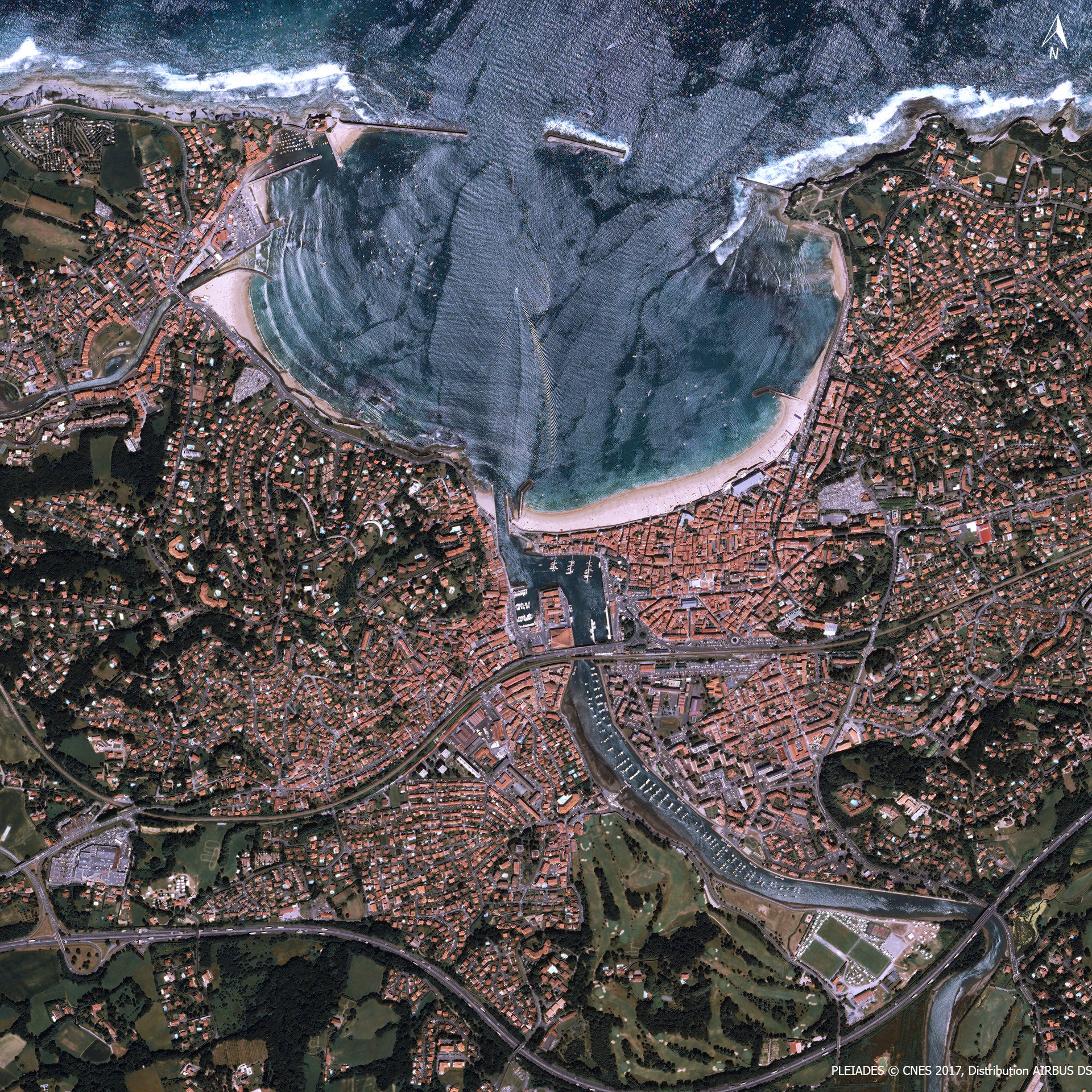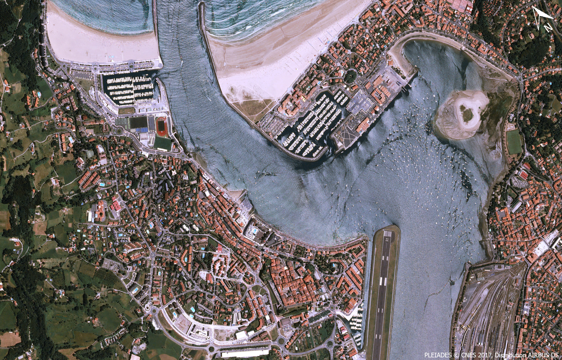 Cette image a été prise par un satellite Pléiades le 31/08/2014. Il s’agit d’une image en couleurs naturelles, de résolution native à 0,70m, ré-échantillonnée à 0,5m.