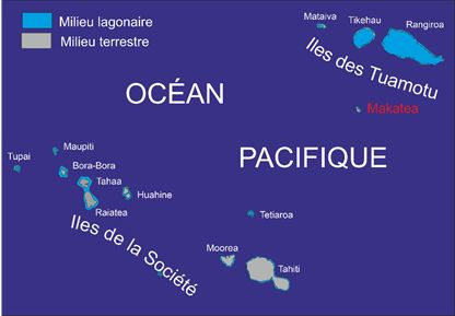 Au milieu de l’océan Pacifique, Makatea appartient à l’archipel des Tuamotu. Pour en comprendre les dynamiques, il faut avoir recours à l’emboitement des échelles d’analyse. Perdu dans l’océan, l’archipel des Tuamotu s’étend en effet entre les îles de la Société et Tahiti à l’ouest, qui se trouve à seulement 220 km à vol d’oiseau de Makatea, les Australes au sud-ouest, les Marquises au nord-est qui se trouvent à 1200 km et enfin Kiribati au nord-ouest.
