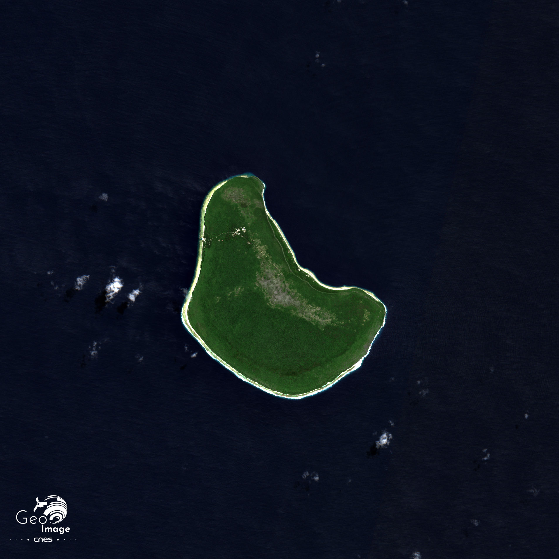 Cette image de Makatea , atoll d'origine corallienne, a été prise par le satellite Sentinel-2A le 11 septembre 2021. Il s'agit d'une image en couleur naturelle et la résolution est de 10m.