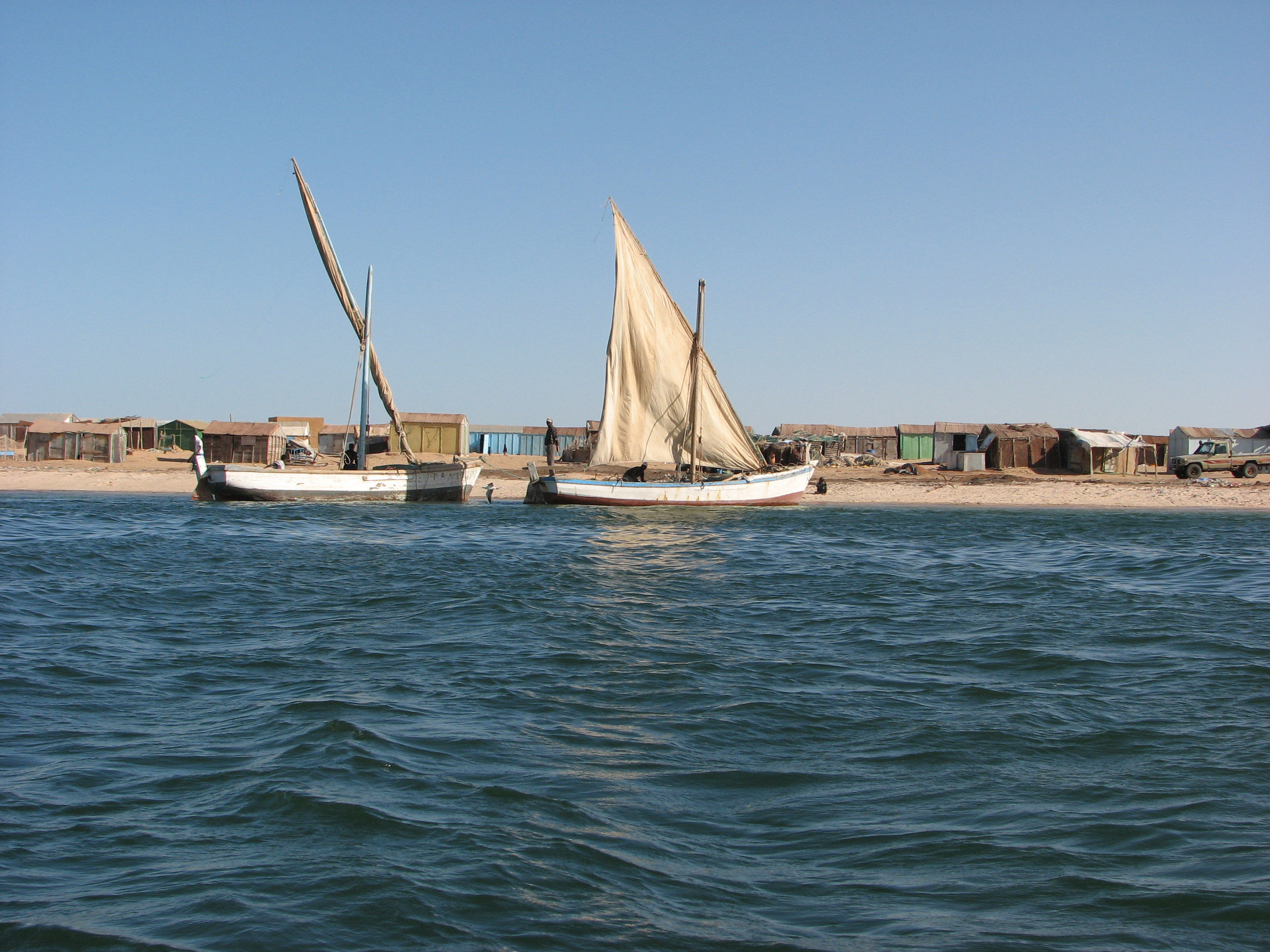 - Photo 2 : Lanches devant le village imraguen d'Iwik - Parc national du Banc d'Arguin (Mauritanie) - Source : Bruno Lecoquierre (2009)