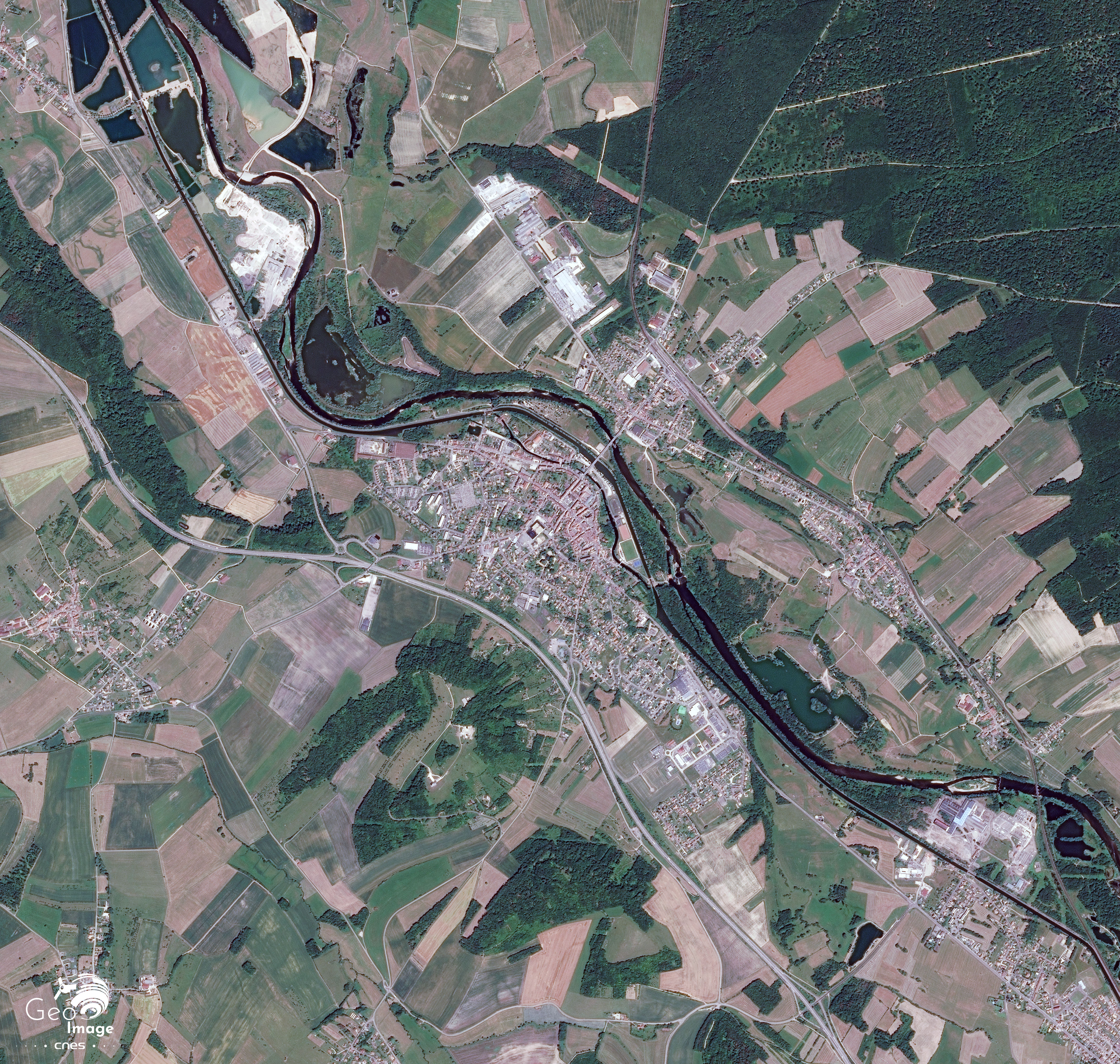 Cette image de la moyenne vallée de la Moselle a été prise par le satellites Sentinel-2 le 9 septembre 2020. Il s’agit d’une image en couleurs naturelles de résolution native à 10m.