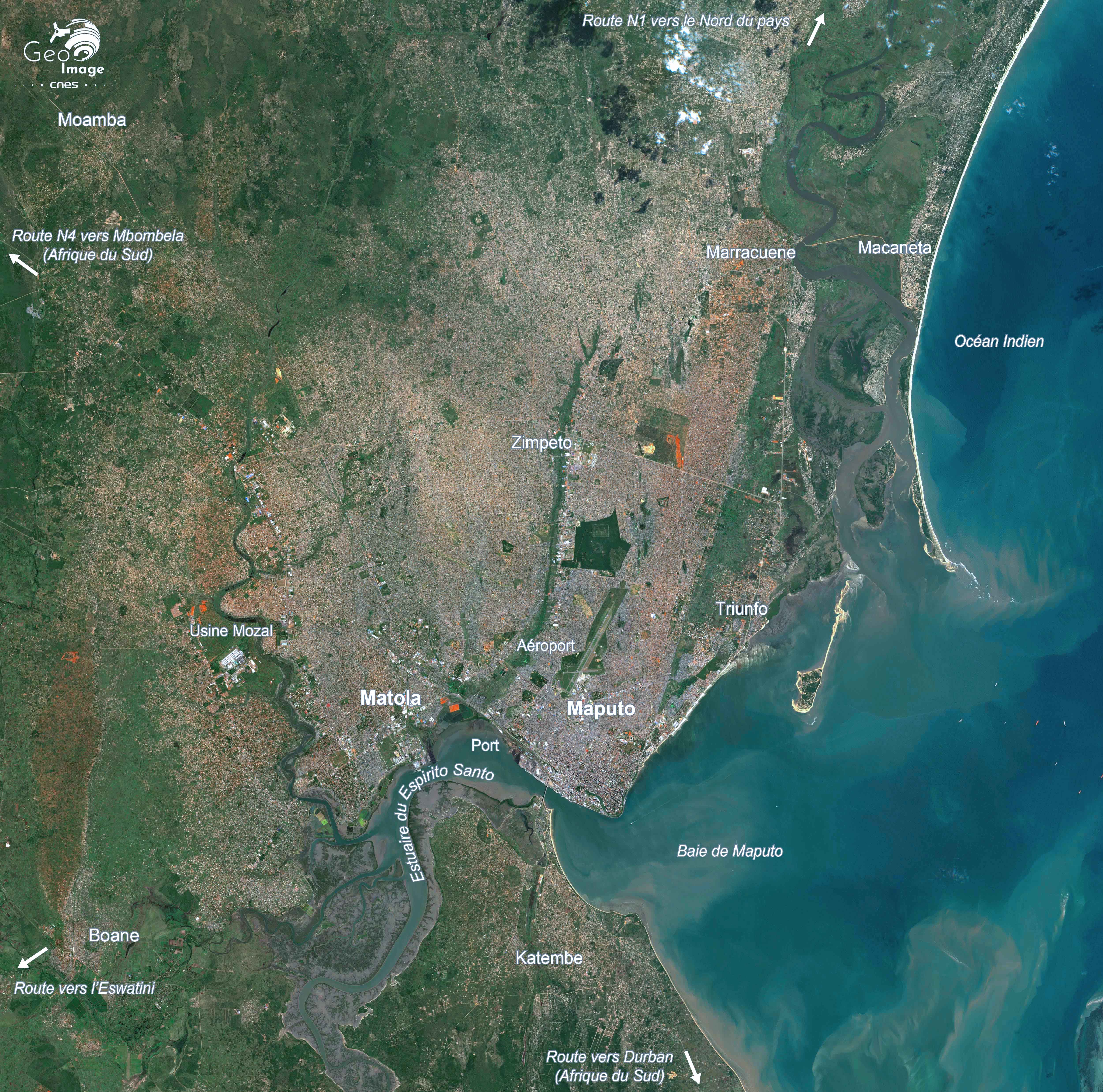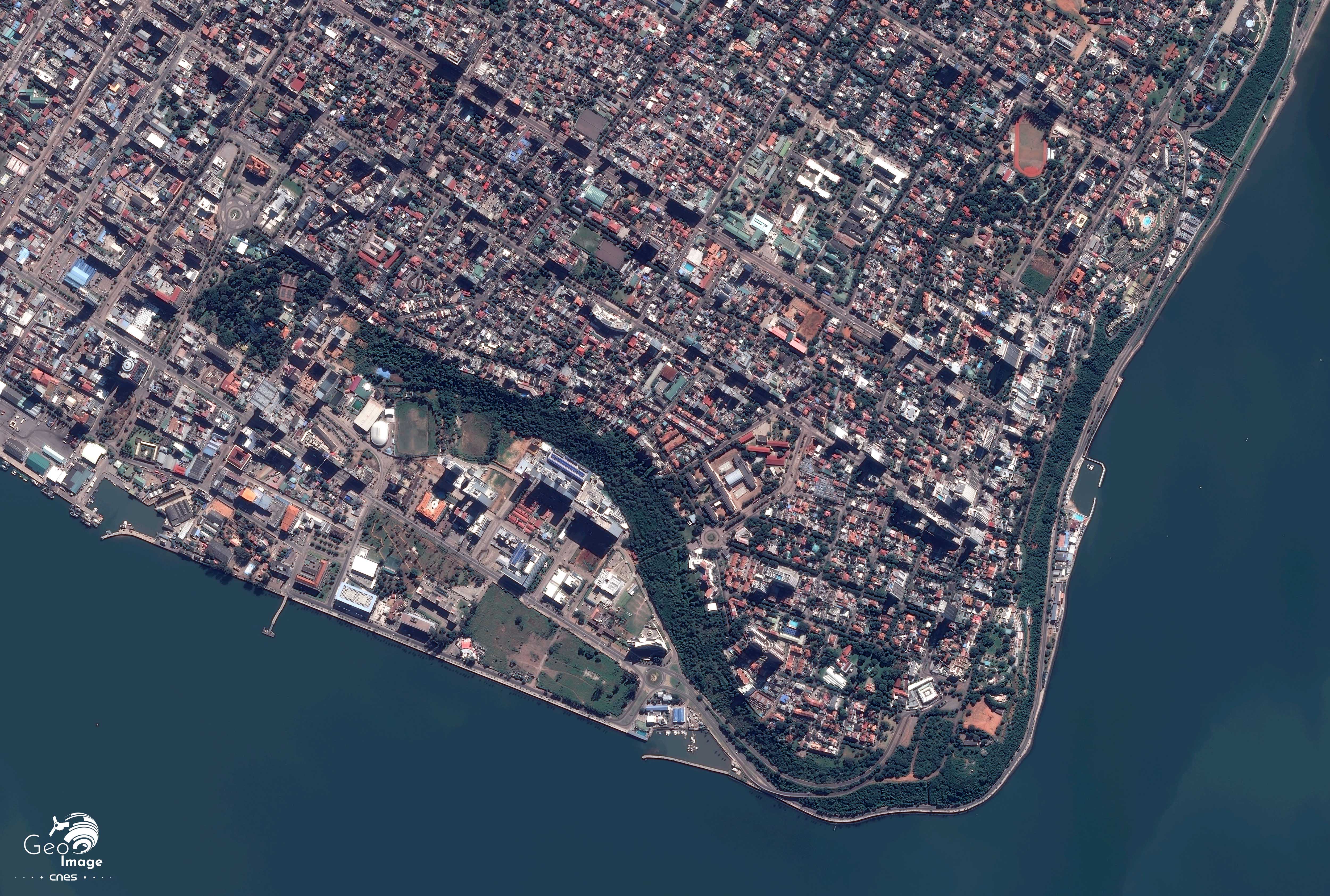 Cette image de Maputo a été prise par un satellite Pleaides le 24 avril 2022. Il s’agit d’une image en couleur naturelle, de résolution native à 0,70m. -