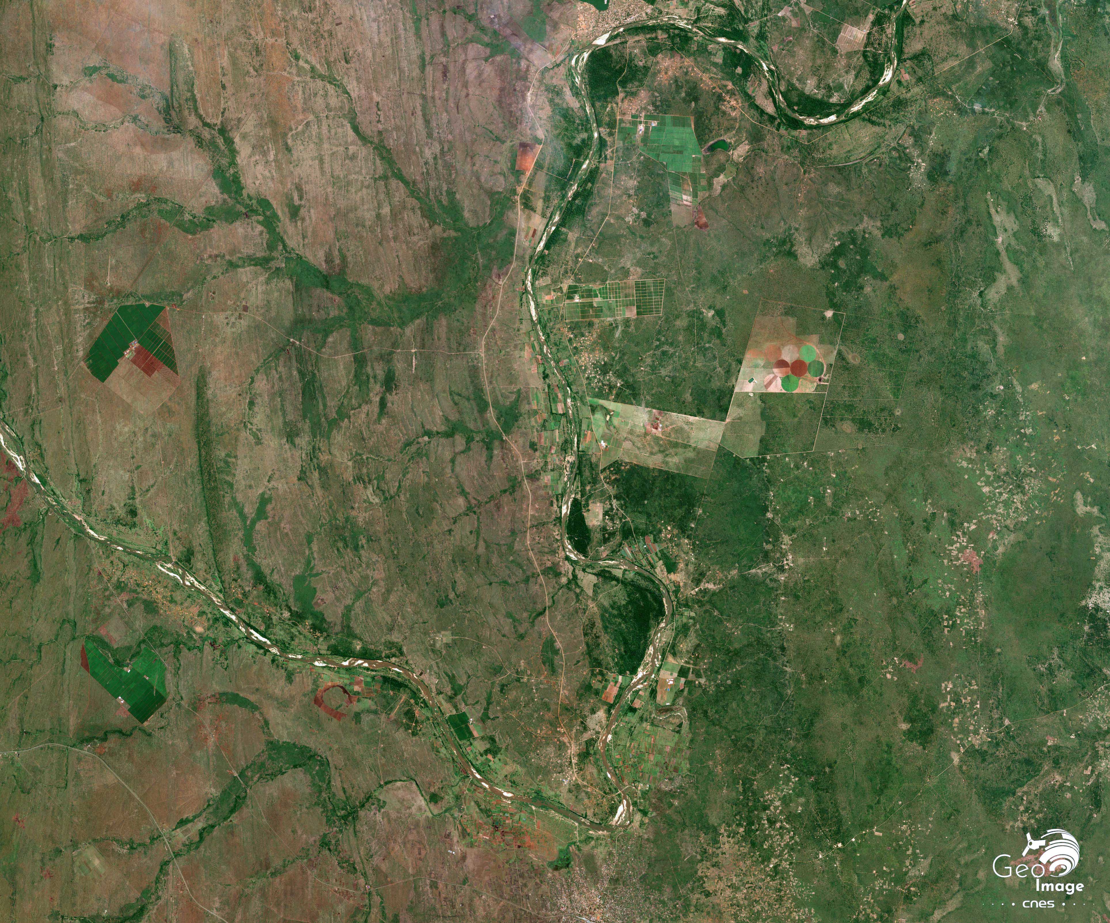 Ces investissements dans une agriculture industrielle sont bien lisibles à Boane (voir le zoom sur Boane), mais aussi à l’Ouest de Maputo avec ces champs emblématiques en forme de cercle optimisés pour l’irrigation et bordant le fleuve Incomati. On retrouve ici l’enjeu de la ressource en eau étant donné que le Mozambique partage le fleuve avec l’Afrique du Sud qui ponctionne énormément d’eau du fleuve pour ses activités agricoles dans la province du Mpumalanga.