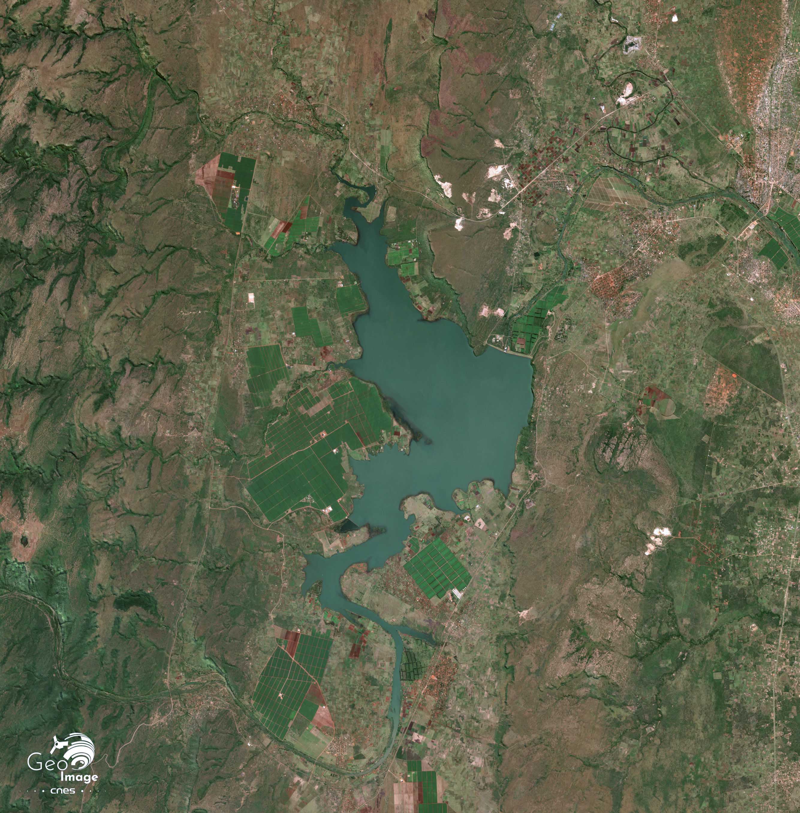 Pour mieux gérer la ressource, le barrage de Pequenos Lebombo que l’on voit ici sur l’image satellite, a été construit dans les années 1980. Il permet de stocker l’eau et réguler le débit du fleuve jusqu’à Boane où une unité de traitement capte la ressource et la traite chimiquement avant de l’envoyer par canalisation vers la métropole. Plus récemment, une nouvelle station de traitement de l’eau a été créée au nord de la ville pour capter l’eau du fleuve Encomati et assurer un meilleur approvisionnement de Maputo. Dans les deux cas, des conventions ont été signées avec l’Eswatini et l’Afrique du Sud pour une meilleure gestion concertée des deux fleuves. Mais étant systématiquement situé en aval, le Mozambique n’a pas vraiment une position avantageuse dans les discussions avec ses deux pays voisins.