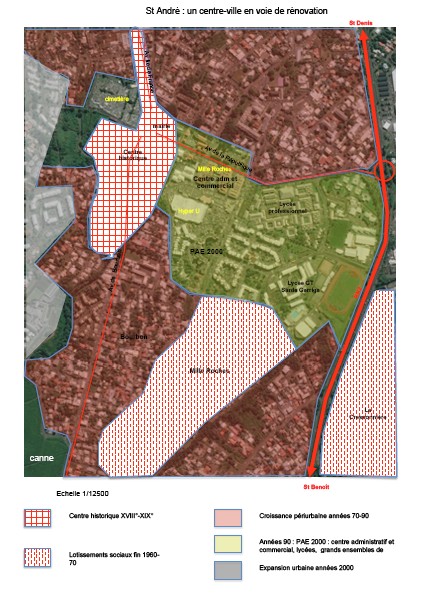 De fait, ces recompositions urbaines successives mais non concertées ont fait du centre-ville de St André un ensemble hétéroclite, une somme d’espaces mal connectés entre eux et avec le reste de l’agglomération.