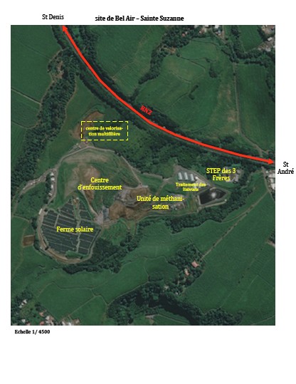 Un centre d’enfouissement technique saturé, une aire de valorisation des déchets annoncée, une station d’épuration neuve, une ferme solaire et du biogaz (voir l’image annotée) : le site de Bel Air à Ste Suzanne résume une partie des défis posés que La Réunion tente de relever pour assurer un développement soutenable.