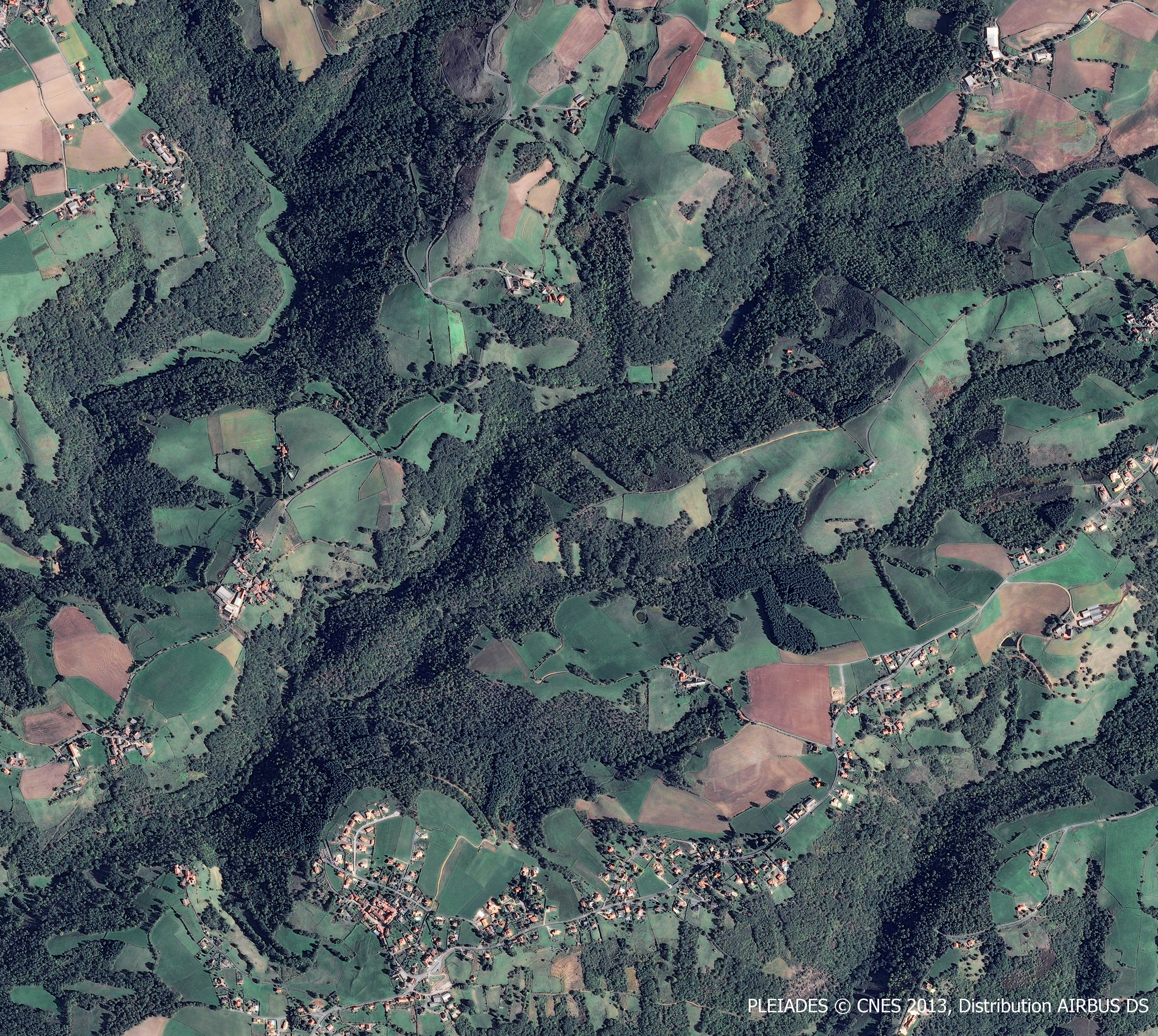 Ce cliché a été pris par le satellite Pléiades 1A, le 13 octobre 2012. La résolution de l’image est de 0.70 m par pixel, ramenée après ré-échantillonnage à 0.50 m. Le cliché est en couleurs naturelles et recouvre un territoire de 12.5 km sur 6.75 km de côté. Le Nord géographique est dans le prolongement de la diagonale qui part du coin inférieur droit de l’image pour aller vers le coin supérieur gauche.