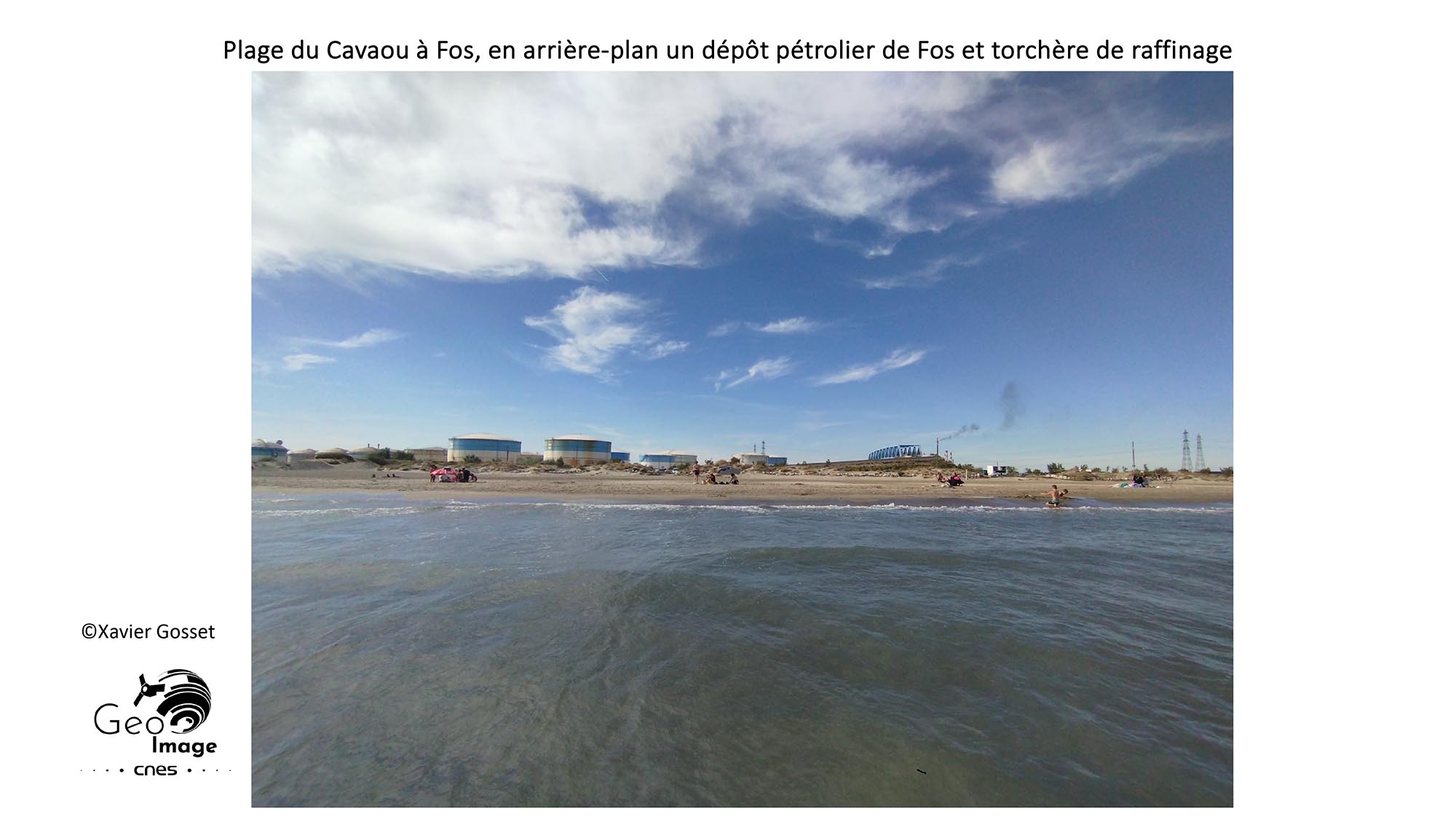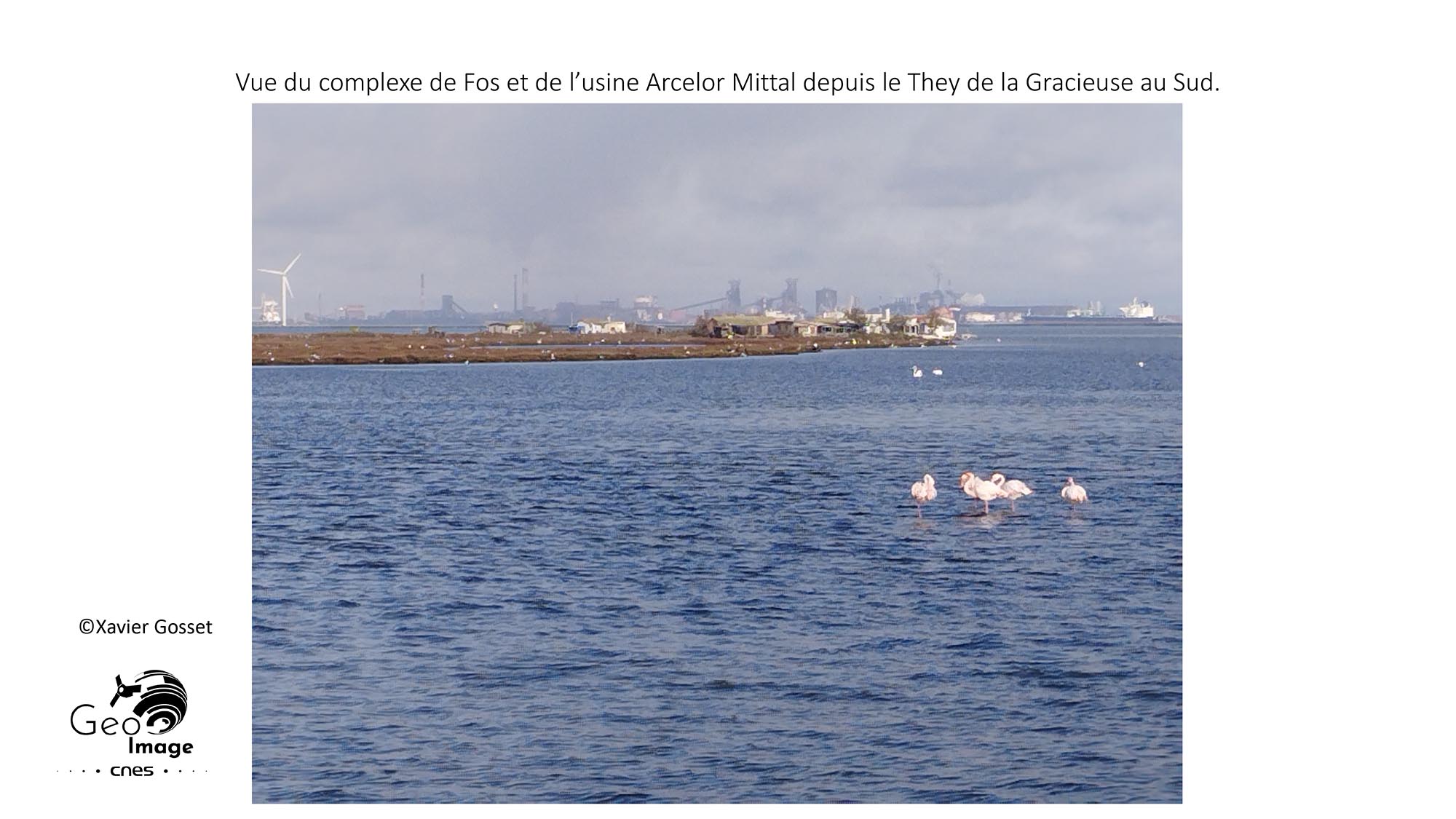 Enfin, le contraste est fort entre formes géométriques anthropisées et espaces “naturels” protégés dans cette image. Le parc naturel régional de Camargue entoure la ZIP par l’EST et de nombreuses zones naturelles d’intérêt écologique faunistique et floristique (ZNIEFF) sont présentes autour et dans la ZIP. De plus, le complexe est entouré d’espaces agricoles, de marais, et de plages. Fos est aussi une zone de loisirs, avec ses réserves de pêches, de chasses, ses flamants roses, et ses plages fréquentées par la population locale. Les ports de plaisance de Fos à l’Est et celui de Port Saint Louis au Sud-Ouest rappellent cette fonction récréative, d’un site parmi les plus transformés de France.