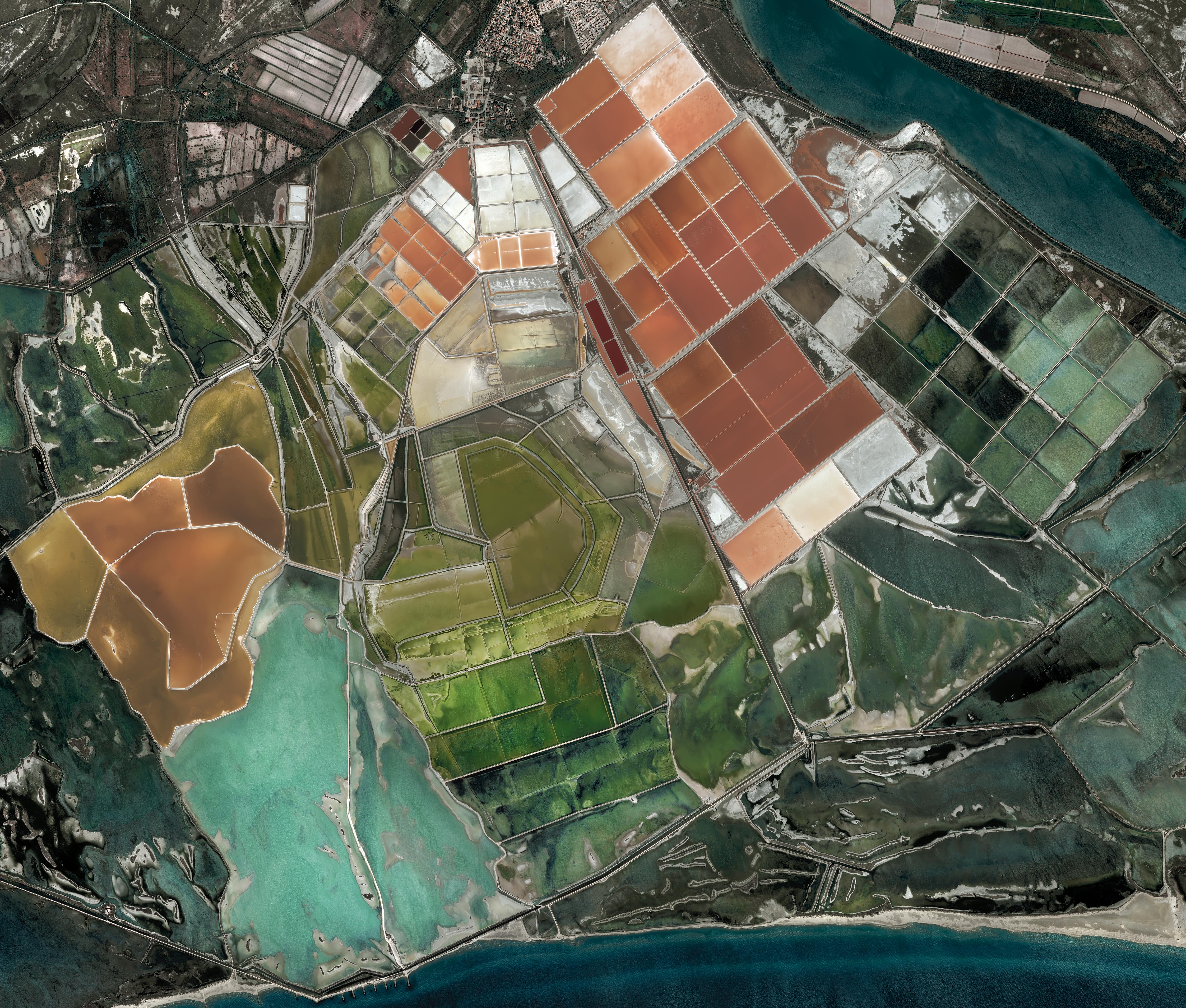 Autour de la ZIP, trois espaces sont visibles aux couleurs bien différentes autour de la ZIP. Au Sud-Ouest, on observe un quadrillage multicolore des marais salants et étangs de Camargue, puis au Nord-Ouest beaucoup d’espaces agricoles, essentiellement en vert, ils révèlent la richesse en eau de cette région, enfin au Nord-Est, les villes de Fos et de Port de Bouc, où subsistent quelques étangs, sont les marqueurs de la conurbation littorale de Marseille.