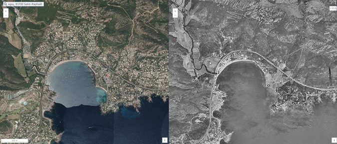 La dernière étude détaillée concernera la partie orientale de la photographie satellite avec un espace s’étendant du centre de Saint-Raphaël à la baie d’Agay. Elle permettra de rendre compte de l’ancienneté du fait touristique sur l’agglomération, du rôle structurant de l’axe ferroviaire mais aussi de la nécessaire préservation des espaces naturels face à l’urbanisation et les risques d’incendie.