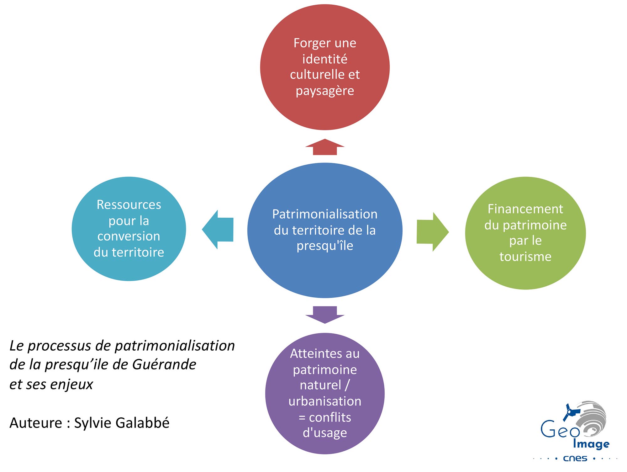 Depuis le XXème siècle et surtout aujourd’hui, la presqu’ile guérandaise est souvent assimilée à la baie de La Baule, aisément accessible en train et par la voie rapide. Depuis l’arrivée du chemin de fer et le développement du tourisme balnéaire au XIXème siècle, la mise en tourisme de ce territoire a été continue et prioritaire sur les autres activités économiques jugées moins rentables jusqu’à entrer en conflit avec ces dernières. Aujourd’hui, nous avons affaire à un espace urbain attractif tant à l’échelle locale (pour les nantais...), qu’à l’échelle nationale (les parisiens...) et internationale (britanniques…).