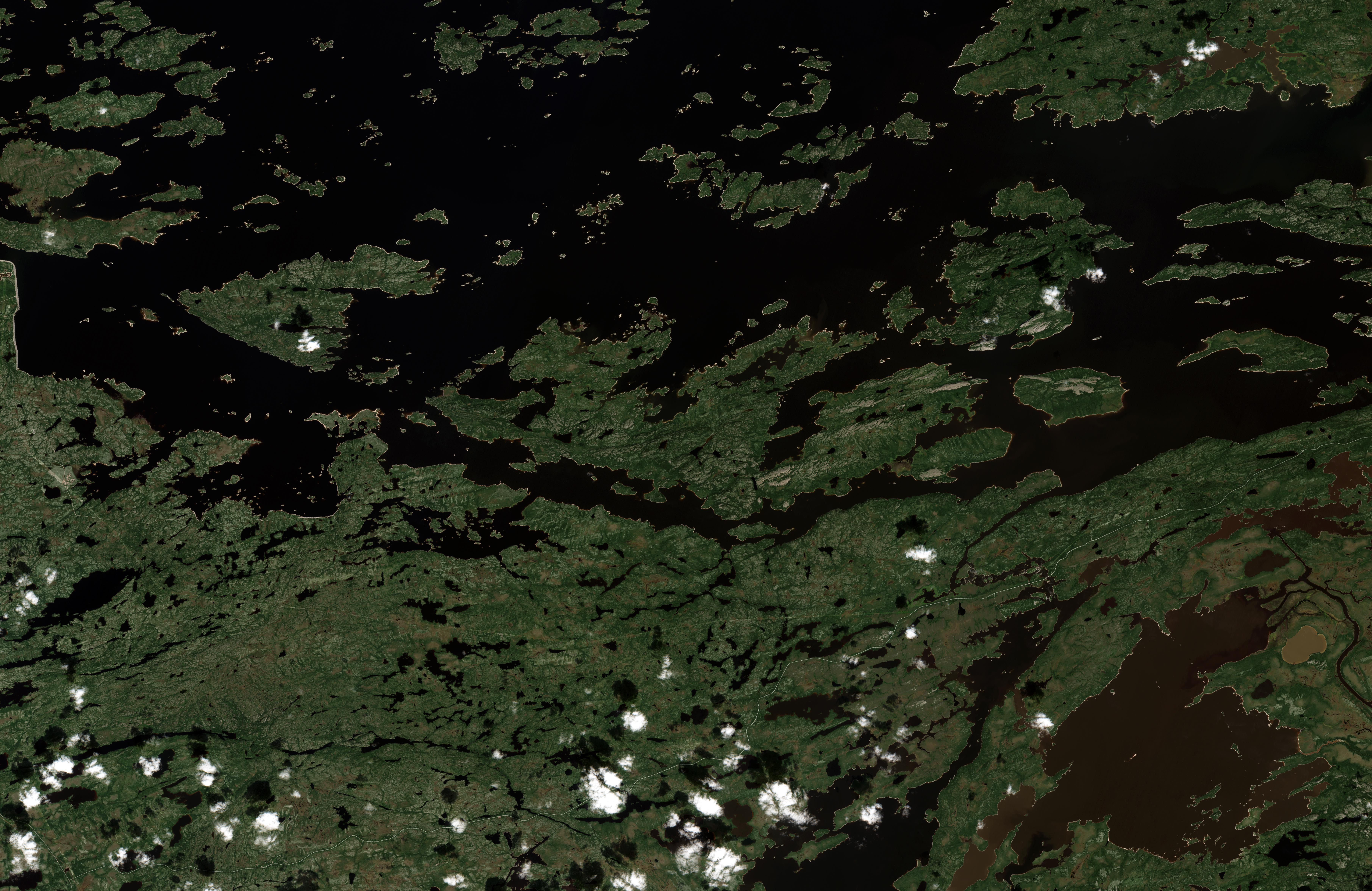 Cette image de la Baie-James dans la région administrative du Nord-du-Québec, a été prise le 27 août 2021 par le satellite Sentinel-2A. Il s’agit d’une image en couleurs naturelles de résolution native à 10m.