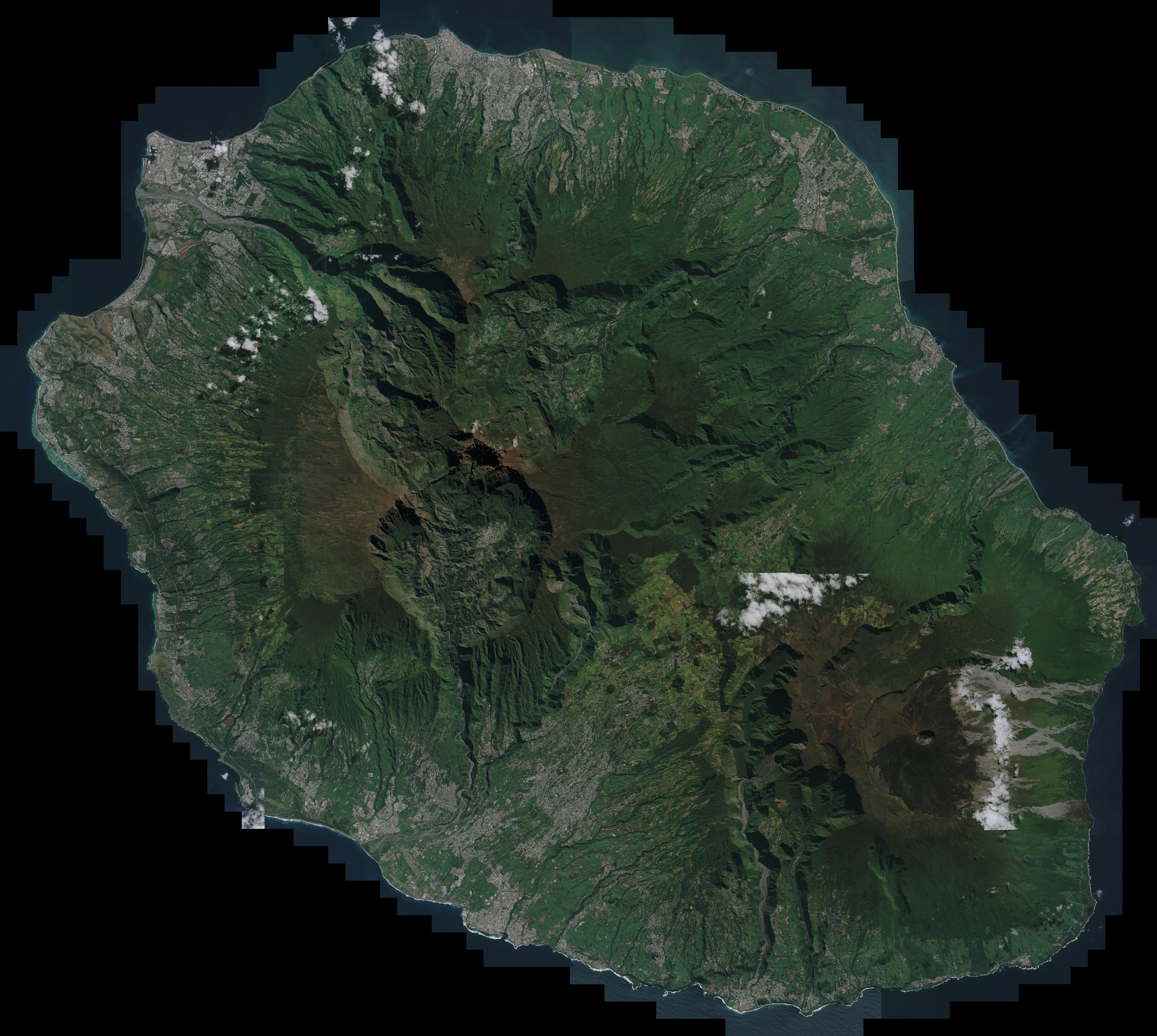 L’édification des deux massifs volcaniques qui composent l’île de La Réunion correspond à la phase la plus récente de cette activité, il y a 5 millions d’années. Le Piton des Neiges (1) est le premier à émerger à la surface des eaux il y a deux millions d'années, suivi par le Piton de la Fournaise il y a 500 000 ans. Il s’agit de deux « volcans-boucliers » de type hawaïen, formés par l'empilement de coulées de laves successives, le Massif du Piton des Neiges, ayant pour sa part évolué en strato-volcan, présentant localement un matériel de type explosif caractérisé par des projections de cendres et de scories.
