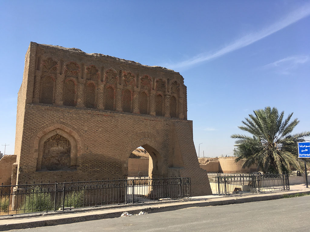Daesh tenta de magnifier le passé islamique de Raqqa, éphémère capitale du Khalifat Abasside d’Haroun al Rachid entre 796 et 809. Le tissu urbain conserve encore la trace de sa fondation par le Khalife al-Mansour en 772 : un fer à cheval que l’on distingue au centre du tissu urbain. Il matérialise un boulevard périphérique autour des vestiges de l’ancienne muraille en terre cuite. De cette époque glorieuse, il ne reste que quelques traces archéologiques comme la porte de Bagdad [photo 2], car la ville fut entièrement détruite par les Mongols en 1258 et fut ensuite pratiquement abandonnée pendant des siècles.