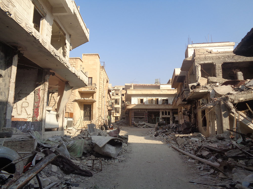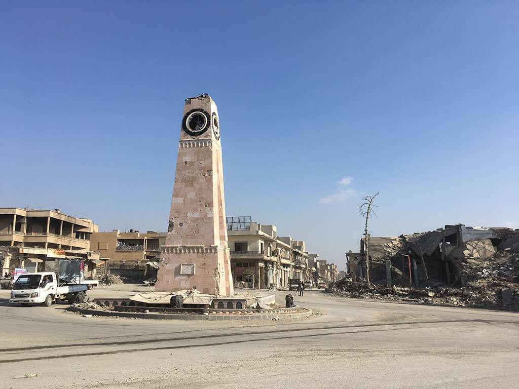 Découvrir Raqqa en janvier 2018, c’est imaginer ce que pouvait être Dresde ou Hambourg en 1945 après les bombardements massifs anglo-américains. La ville n’a plus d’infrastructures. Les ponts sur l’Euphrate sont détruits, le réseau d’électricité est à terre, de toute façon, la production locale est insuffisante. Les conduites d’eau et les égouts sont éventrés par les bombes. Dès que la nuit tombe il est préférable de ne pas sortir de chez soi.