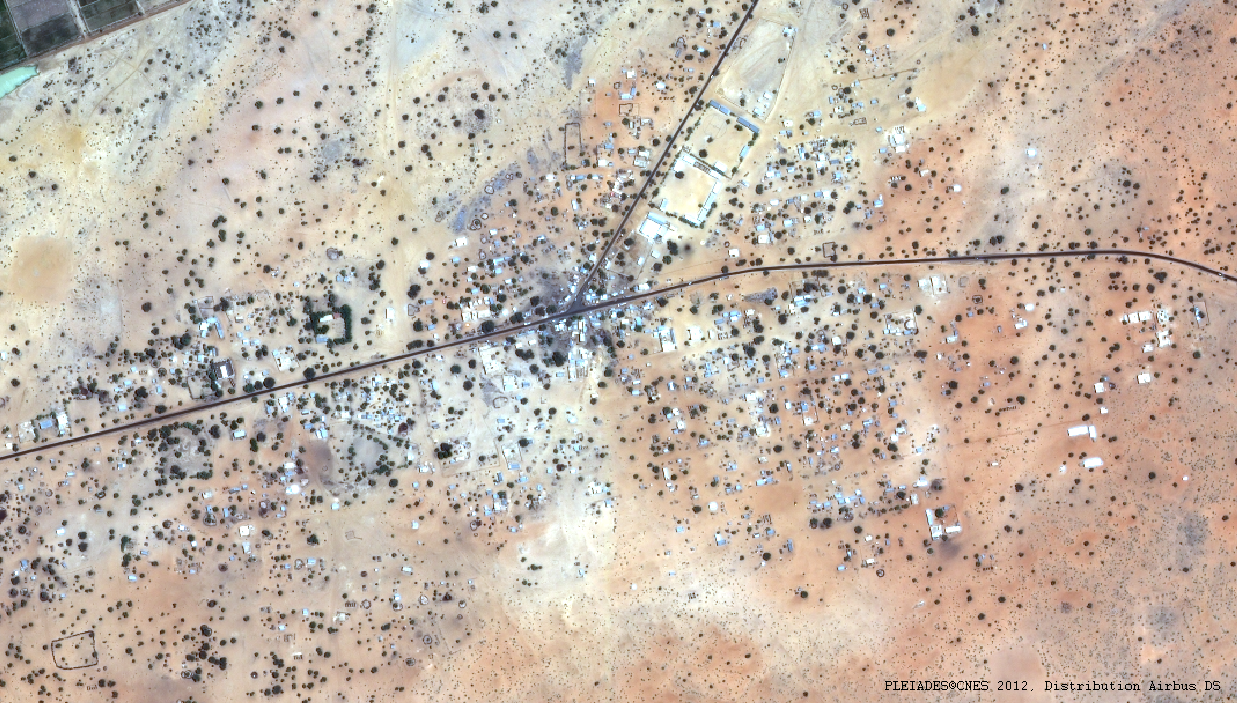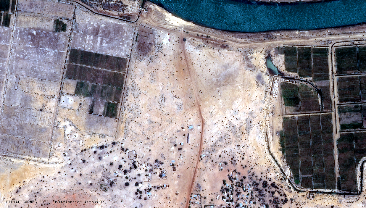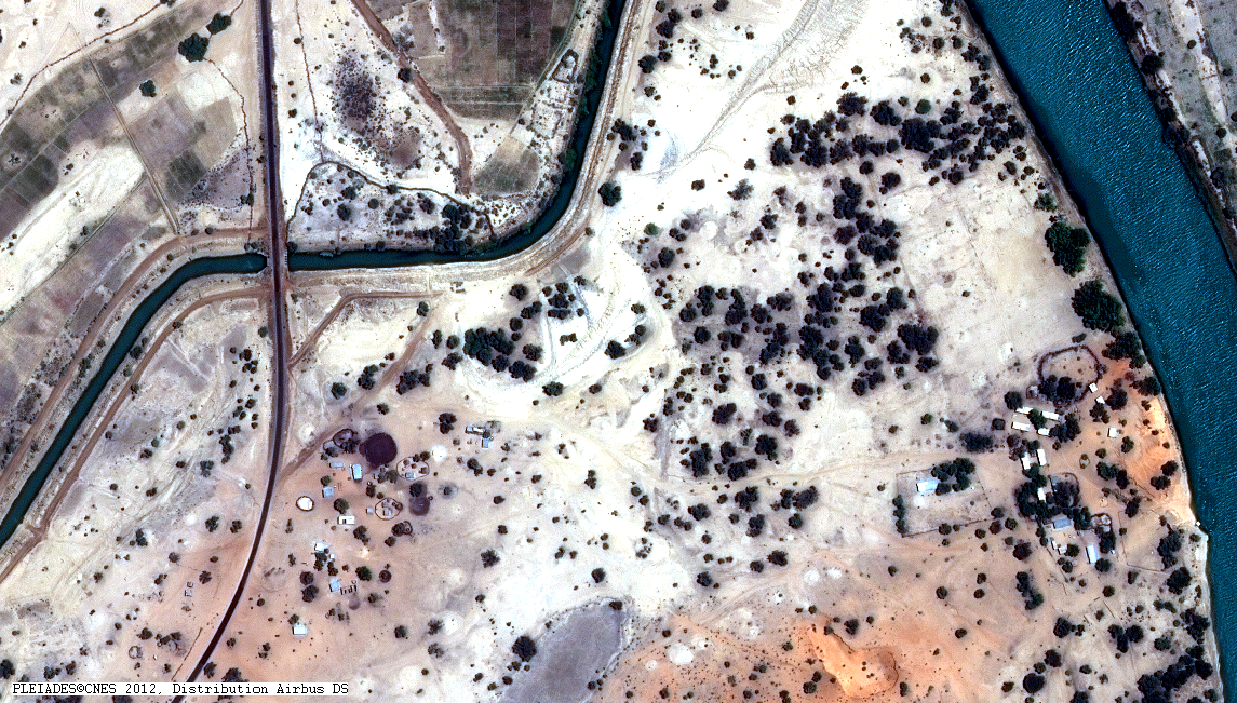 Cette image a été prise par le satellite Pléiades-1A le 24/04/2012. Il s’agit d’une image en couleur naturelle, de résolution native à 0,70m, ré-échantillonnée à 0,5m. La date du 24 avril se situe en fin de saison sèche.