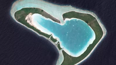 Cette image de l'atoll de Tupai a été prise par un satellite Pléiades le 17/02/2015. Il s’agit d’une image en couleurs naturelles, de résolution native à 0,70m, ré-échantillonnée à 0,5m.