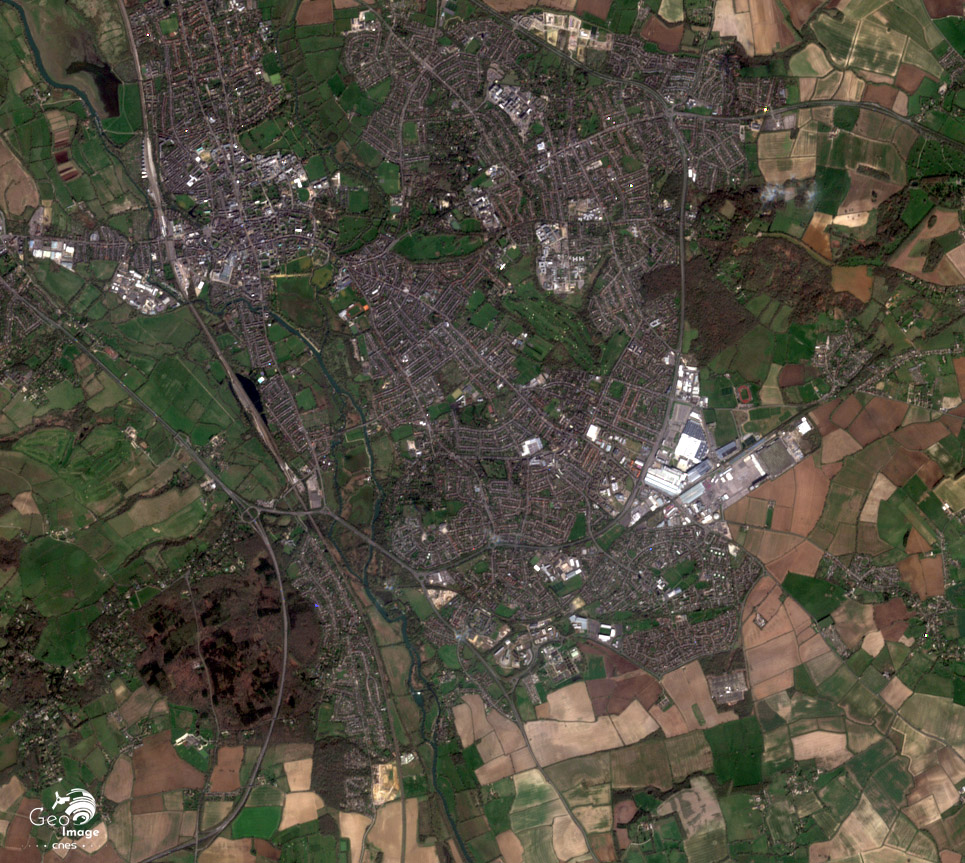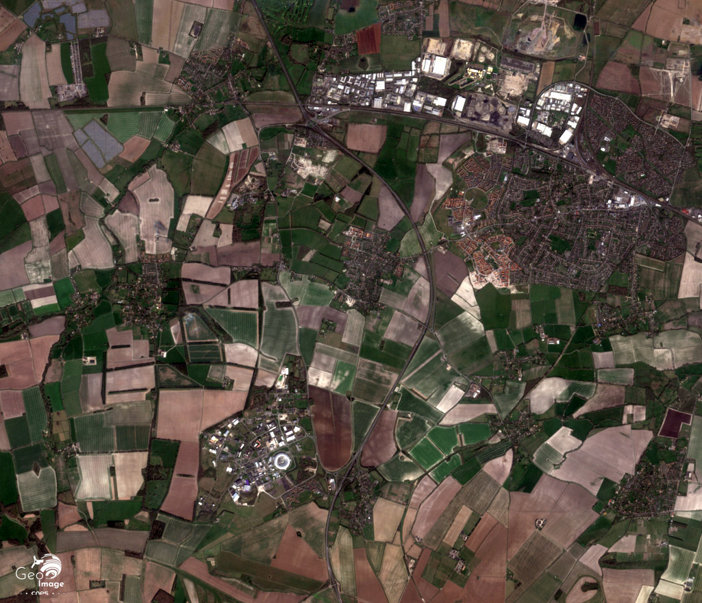 This image of Oxford in south-central England was taken by the Sentinel-2A satellite on March 27, 2020. It is a natural color image of native resolution at 10m.