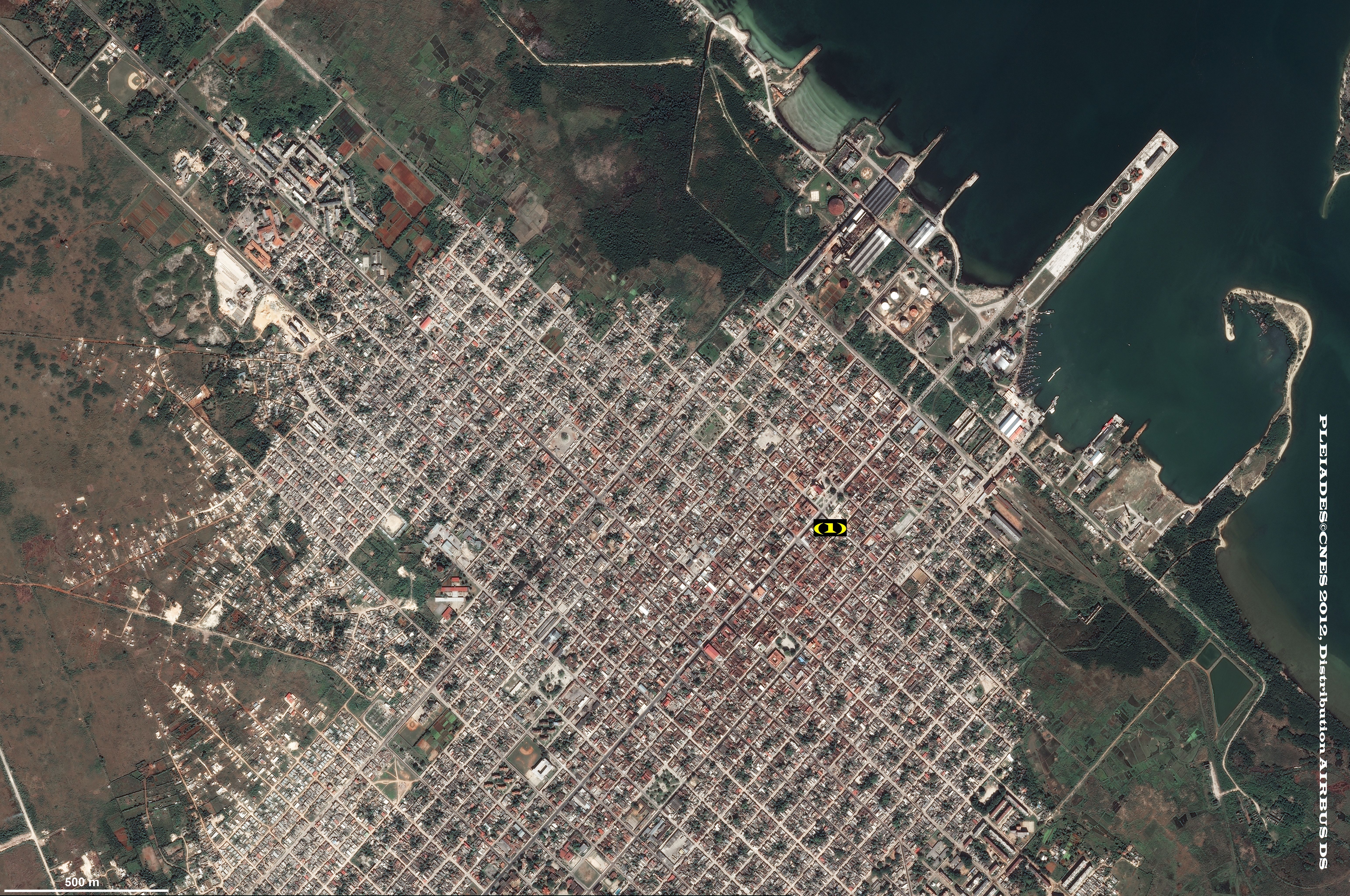 Sur l’image, on note que la régularité du plan urbain de Cardeñas a été globalement respectée par les extensions qui ont accompagné la croissance de la ville depuis sa fondation en 1828. Pour autant, à proximité de la puce (1), on note la présence de quartiers dont les extensions anarchiques rompent avec le tracé rectiligne. Ce quartier est appelé localement « La Cartonera » en raison de sa proximité avec une usine de carton. Il s’agit de logements illégaux, occupés par de nouveaux arrivants dans la région de Cardeñas.