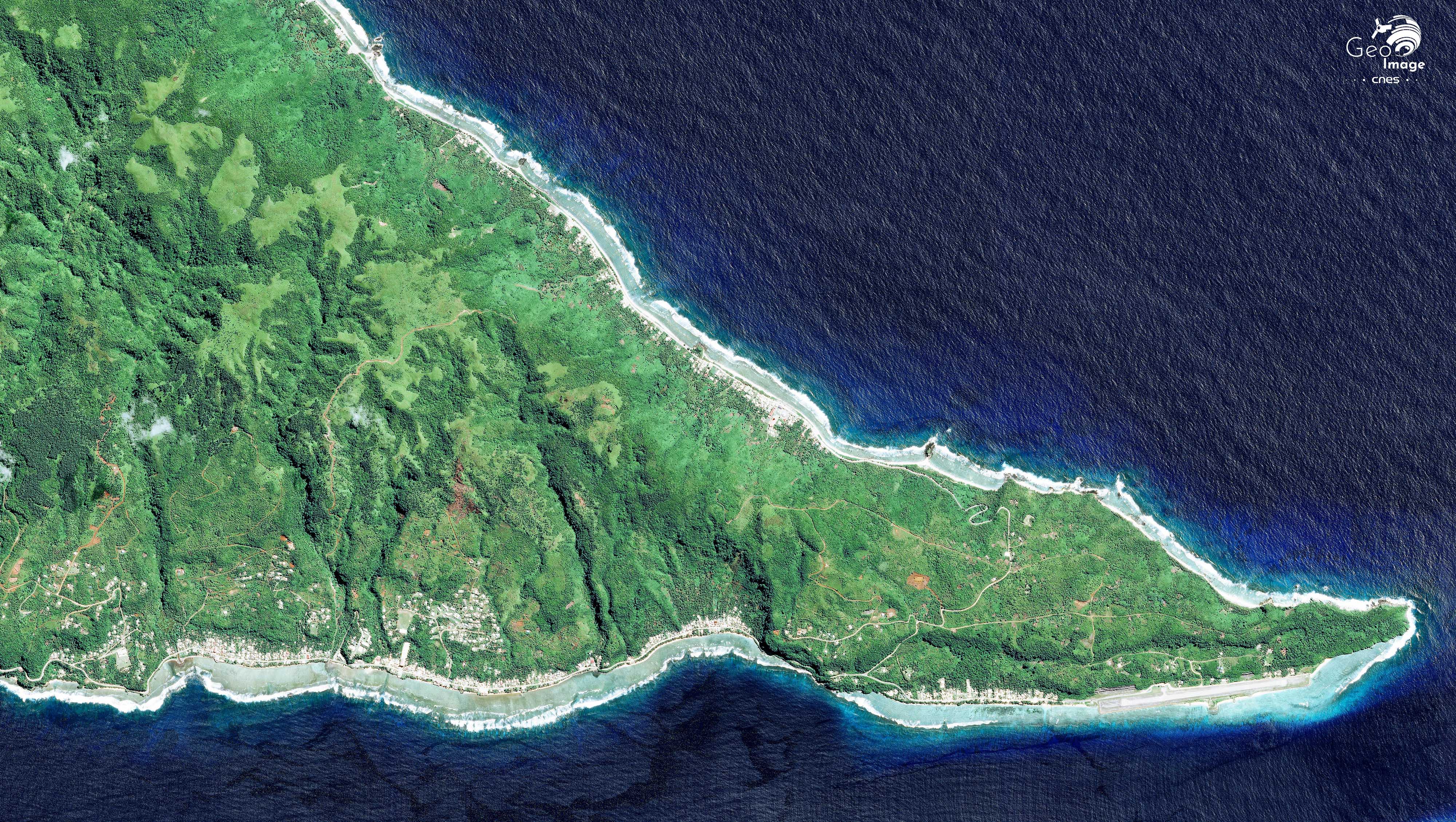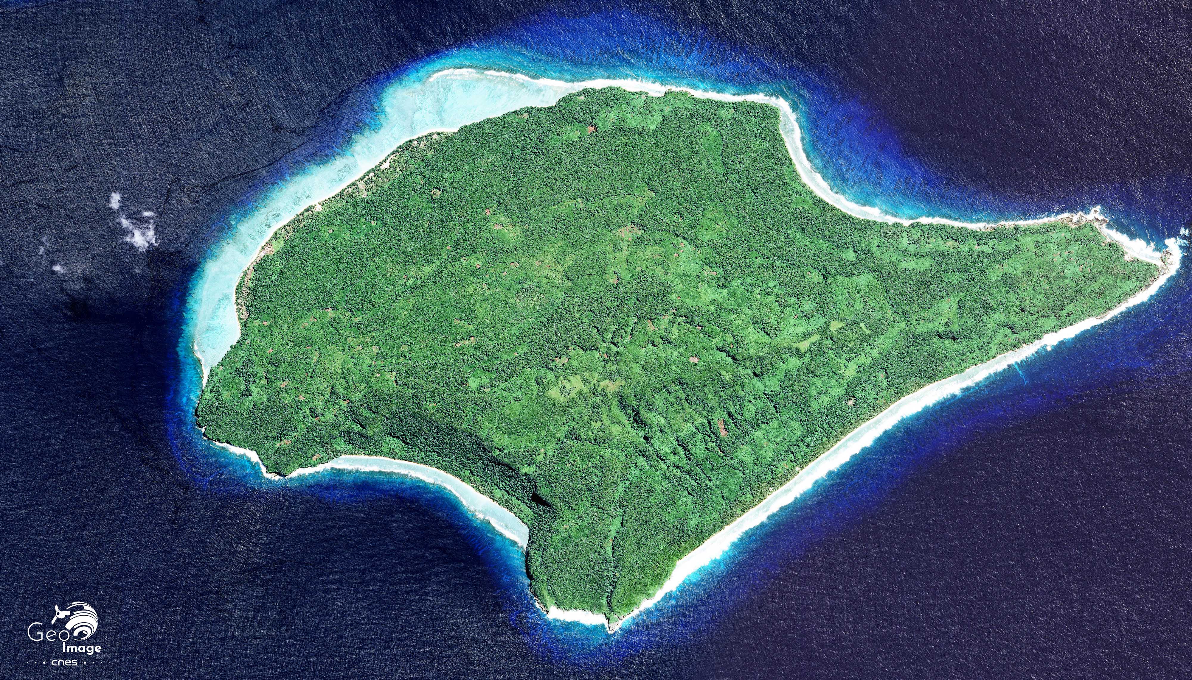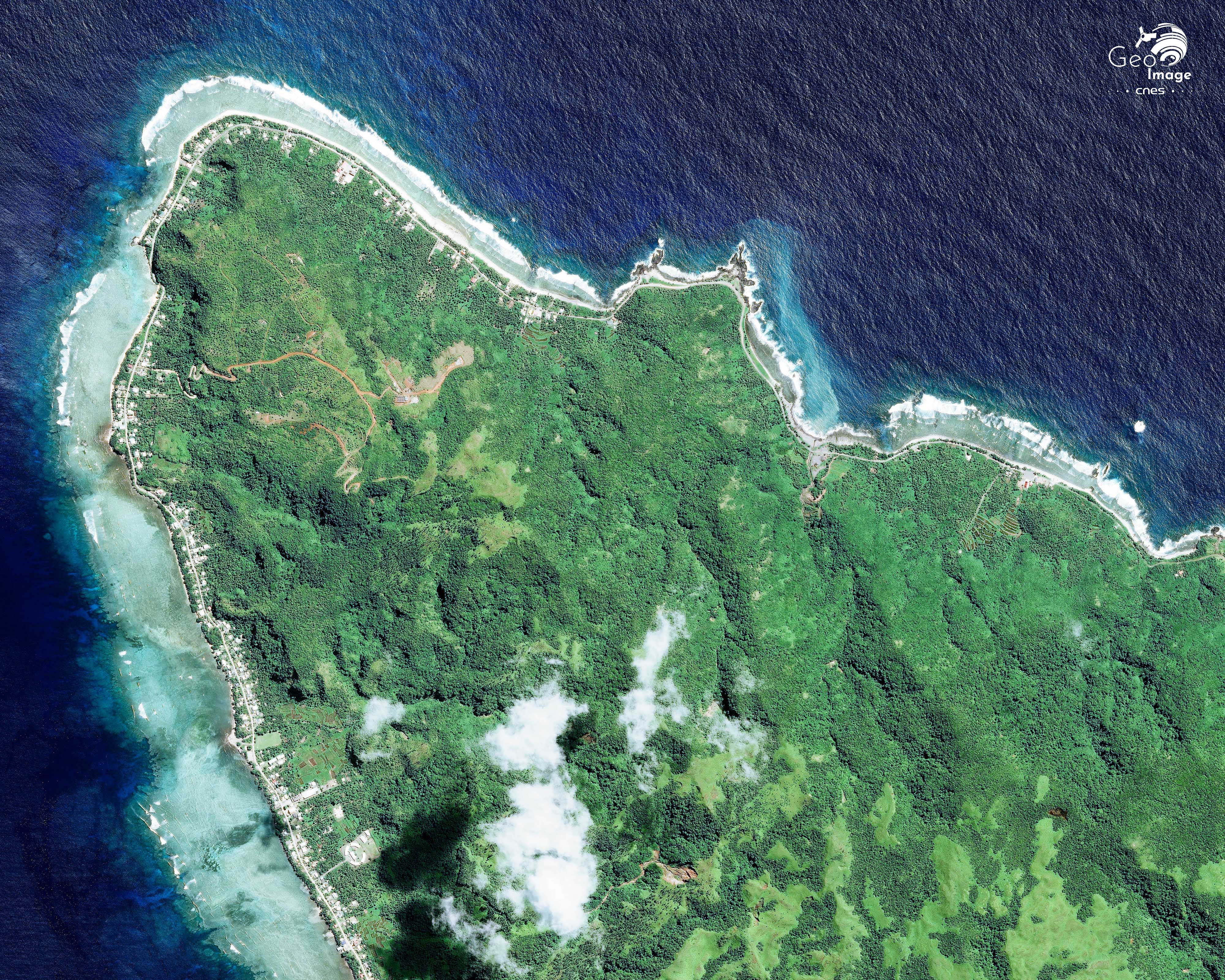 Cette image des îles de Wallis et Futuna, territoires français d'outre-mer dans l'océan Pacifique, a été prise par un satellite Pléiades le 10 avril 2015. Il s’agit d’une image en couleur naturelle, de résolution native à 0,70m, ré-échantillonnée à 0,5m.