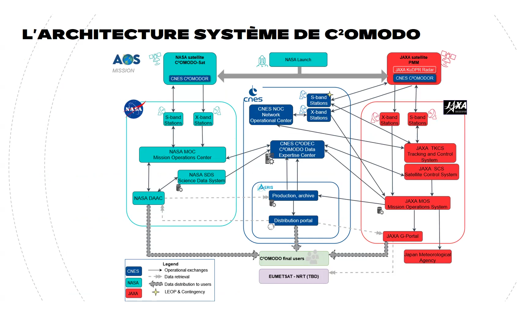 Les trois agences impliquées sur AOS-Storm participent au segment sol du programme C²OMODO : la NASA, le CNES et la JAXA.
