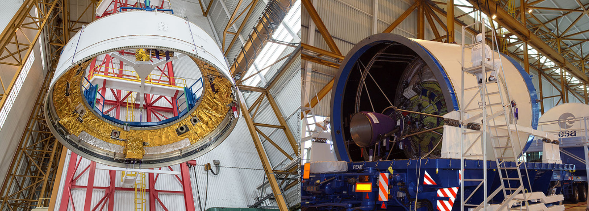 Pour emporter la charge utile jusqu’à sa position en orbite, Ariane 5 était constituée de deux composites distincts qui prenaient le relais successivement pendant le lancement.