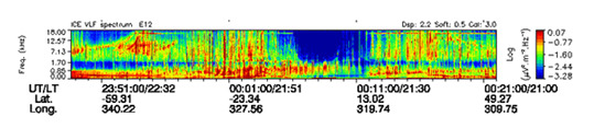 Ces ondes dues aux orages atmosphériques se propagent dans le guide Terre - ionosphère mais elles peuvent s'échapper et être ainsi observées par un satellite. Elles présentent alors une fréquence de coupure qui est inversement proportionnelle à la hauteur du guide Terre - ionosphère comme cela est montré par le diagramme ci-dessous.