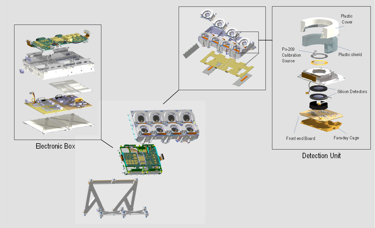 Chaque particule pénétrant les détecteurs y génère une impulsion de courant qui est transformée en impulsion de tension, amplifiée et mise en forme, dont on va mesurer l’amplitude et le nombre, pour former des spectres qui seront envoyés sur Terre. Le nombre de particules y sera classé en fonction de leur énergie. L’instrument est adapté aux conditions de pression (vide) et de température (entre -40 °C et +60 °C) qui seront rencontrées pendant la mission. Une petite source de calibration embarquée (Polonium-209), qui émet des particules alpha à une énergie connue, est positionnée devant chaque Unité de détection pour corriger les dérives des spectres avec la température et pour vérifier le bon fonctionnement de l’instrument.