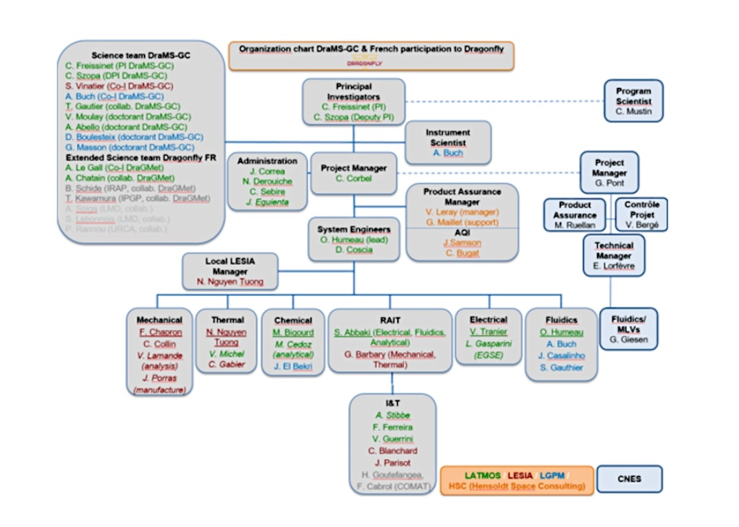 Le chromatographe en phase gazeuse DraMS-GC, sous-système de DraMS, est fourni par la France. Le CNES est responsable de cette fourniture, développée sous maitrise d’œuvre du LATMOS sous la responsabilité de l’investigatrice principale, Caroline Freissinet.