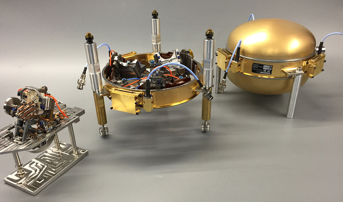 - une sphère comportant trois capteurs sismiques très large bande (Very Broad Band - VBB) et leurs capteurs de température,
