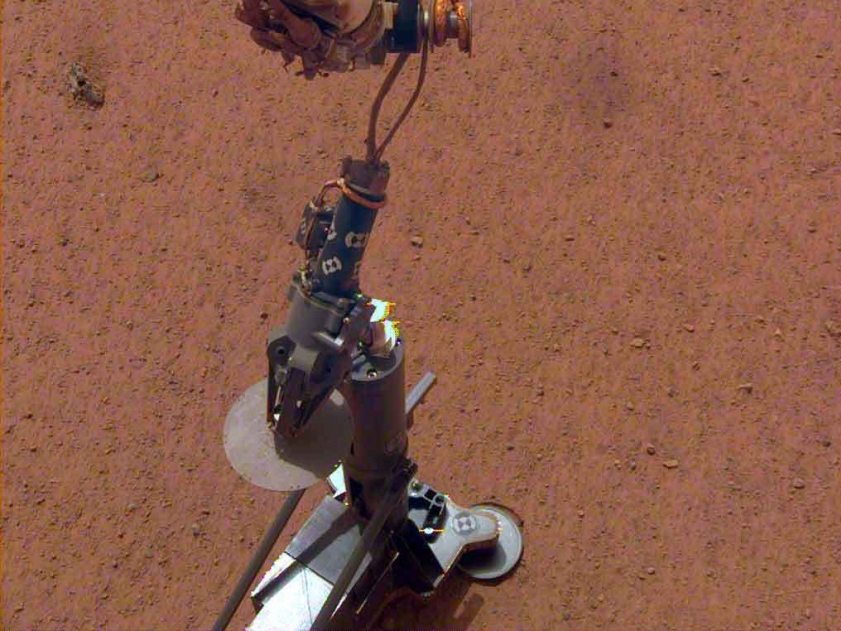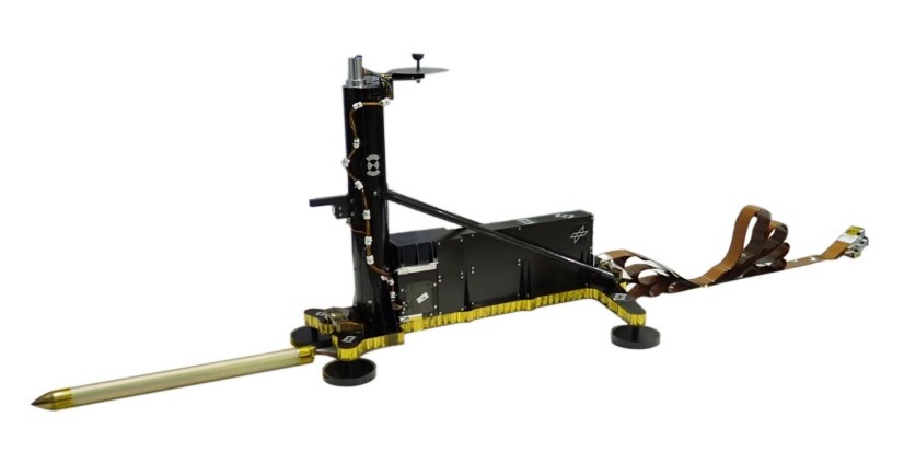 - HP³ : pour mesurer le flux de température sous la surface de Mars (jusqu’à 5m), un indicateur clé de l'évolution planétaire, InSight a déployé une sonde de chaleur à la surface de Mars. L'instrument, nommé HP³, s’enfonce à cinq mètres de profondeur sous la surface de Mars, plus profondément que tous les bras, pelles, foreuses et sondeurs précédents, pour connaître la quantité de chaleur venant de l'intérieur de Mars et pour révéler l'histoire thermique de la planète.