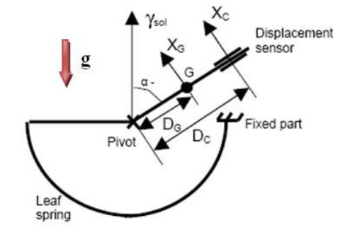 Le ressort et le poids du pendule s'équilibrent parfaitement. Lorsque le sol bouge, le pendule se met en mouvement. Ce mouvement est capté par le capteur DCS. Le mécanisme d'équilibrage permet d'ajuster l'équilibre du pendule aux conditions d'utilisation réelles (gravité mal connue, défaut de nivellement, influence de la température sur l'équilibre du pendule). Le pivot doit permettre la rotation de la partie mobile autour de son axe sans exercer le moindre frottement.