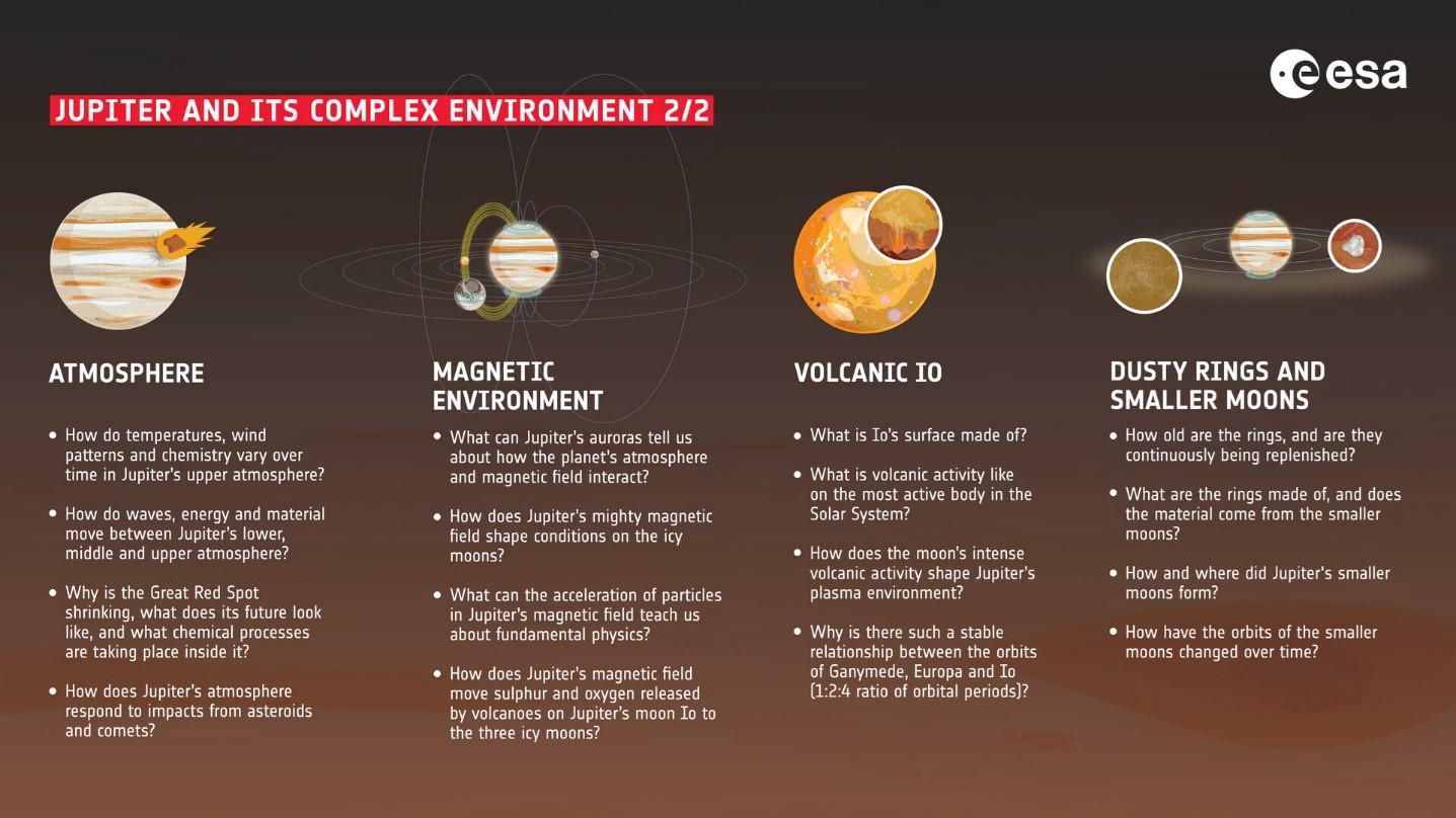 Mieux connaître le système jovien et son histoire, depuis son origine jusqu'à l'émergence possible d'environnements propices à la vie, nous donnera une meilleure idée de la façon dont les planètes géantes et leurs satellites se forment et évoluent. Un éclairage nouveau pourra aussi être apporté sur les possibilités d'apparition de la vie dans les systèmes planétaires extrasolaires similaires à Jupiter.