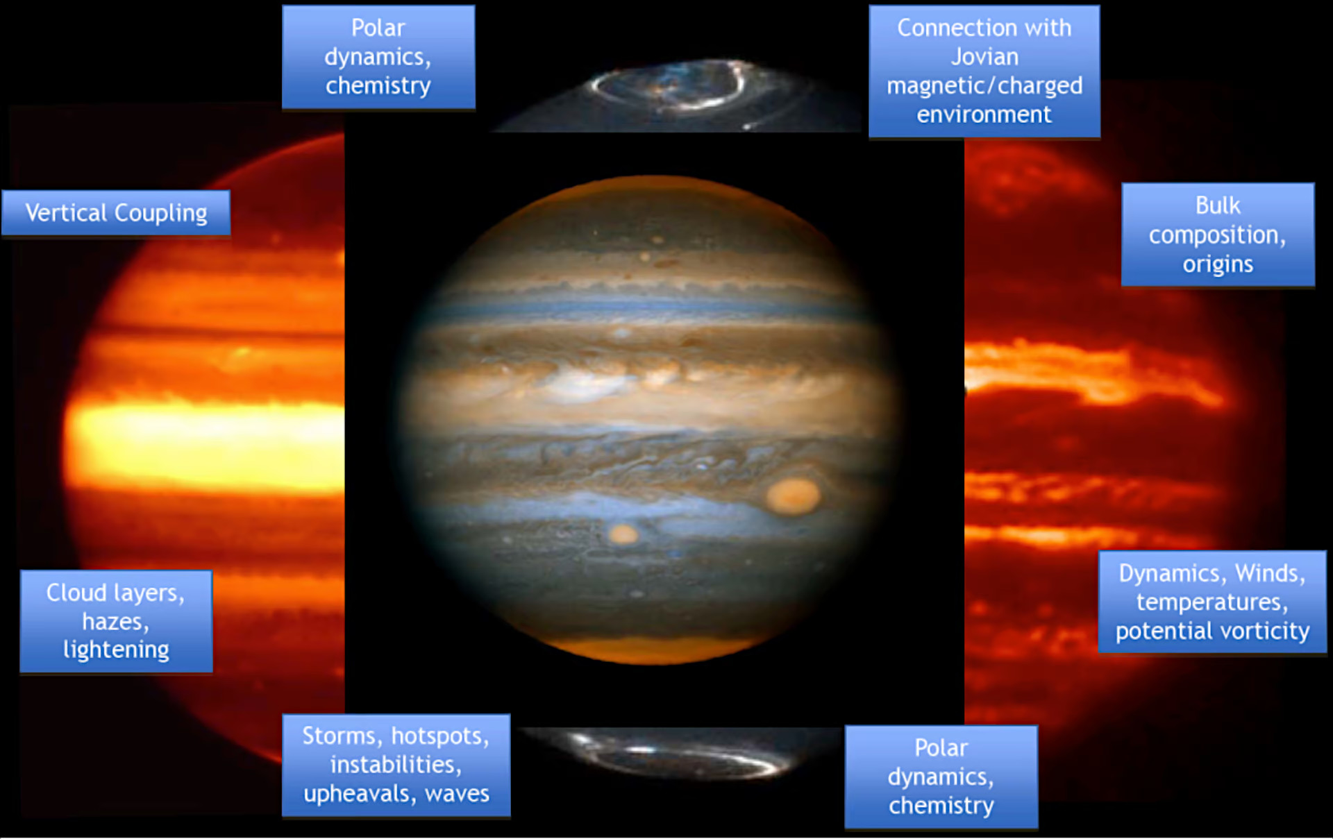 Les études de l'atmosphère jovienne concerneront essentiellement sa structure, sa dynamique et sa composition. La circulation, la météorologie, la chimie et la structure de Jupiter seront étudiées depuis le sommet des nuages jusqu'à la thermosphère. Ces observations se feront sur une durée suffisante et une couverture latitudinale assez large afin d'étudier les systèmes météorologiques en évolution et les mécanismes de transfert d'énergie et de matière entre les différentes couches.