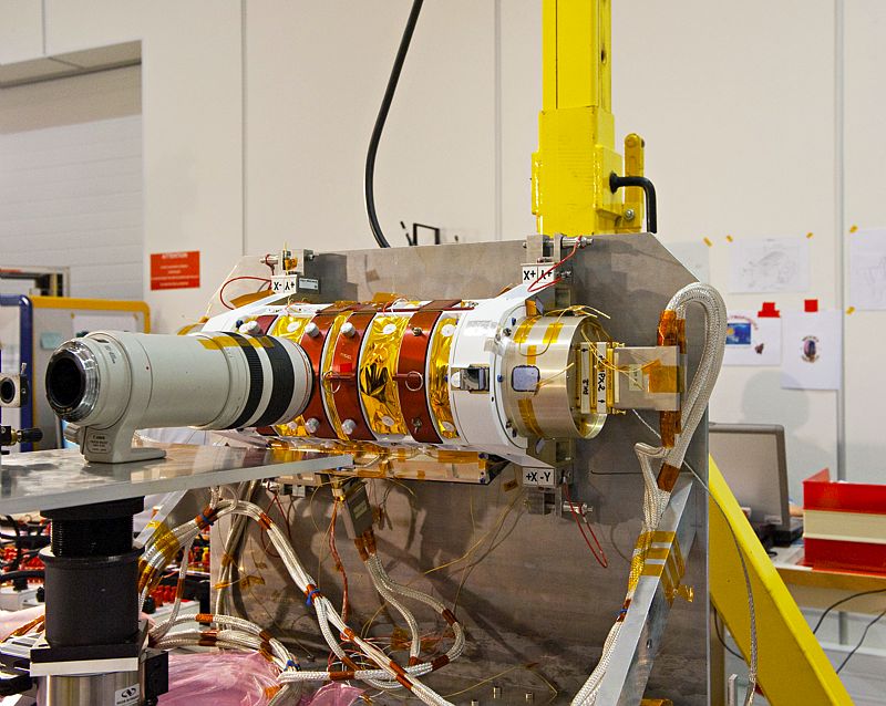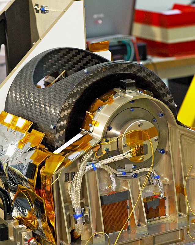 - Le boîtier électronique (EM) : il gérait les interfaces avec la plate-forme (puissance, télémesure, commandes) et pilotait le boîtier optique pour l'acquisition des données scientifiques.