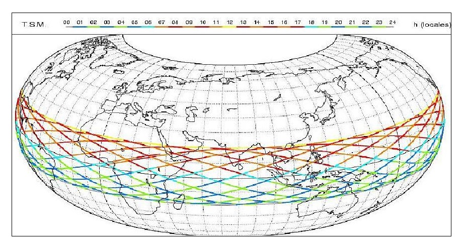 L’orbite du satellite et les caractéristiques de chaque instrument impliquaient l'échantillonnage spatio-temporel suivant :